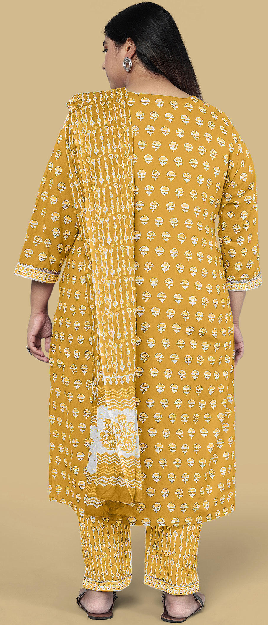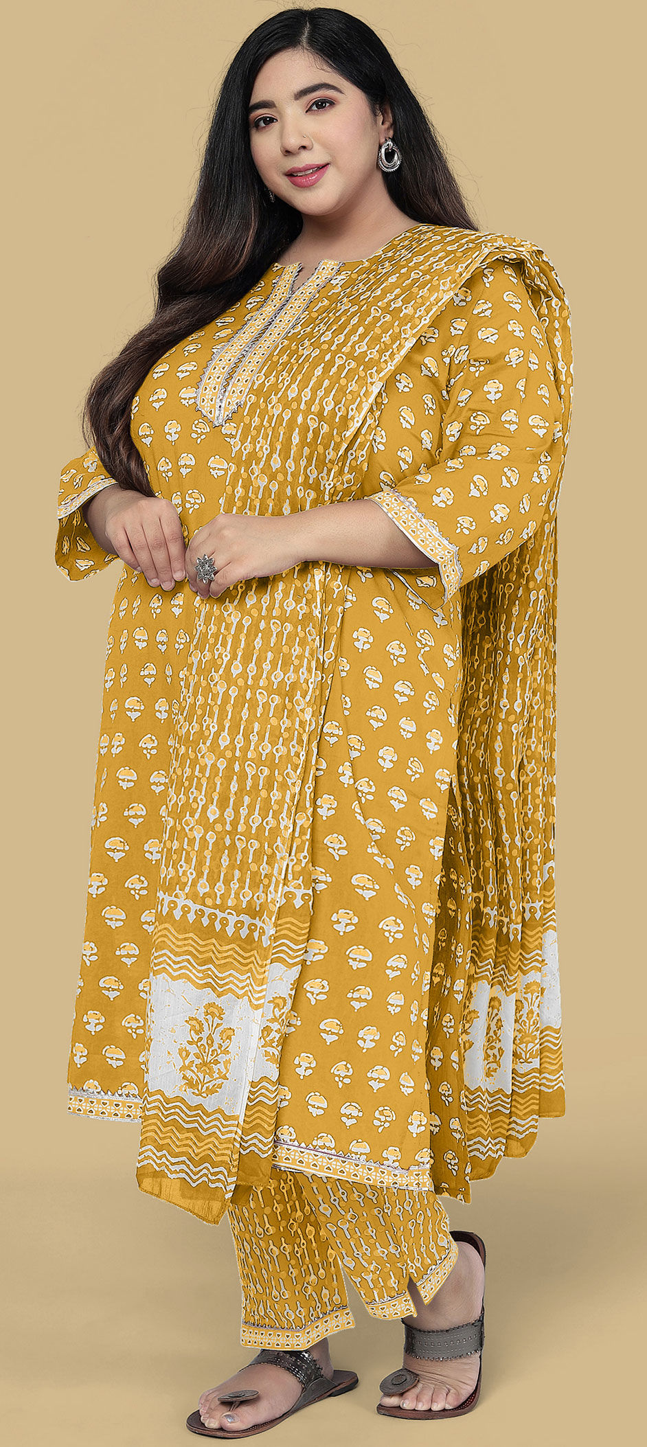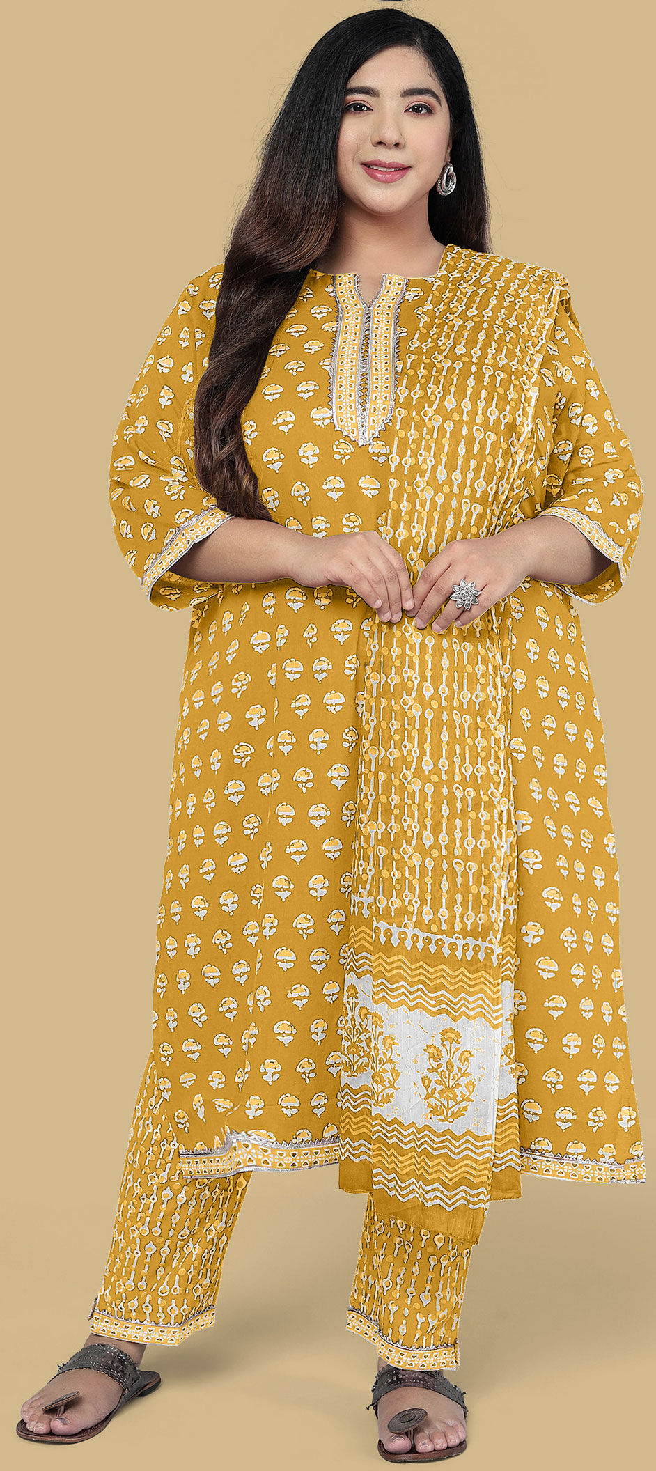 Yellow color Salwar Kameez in Cotton fabric with Printed work