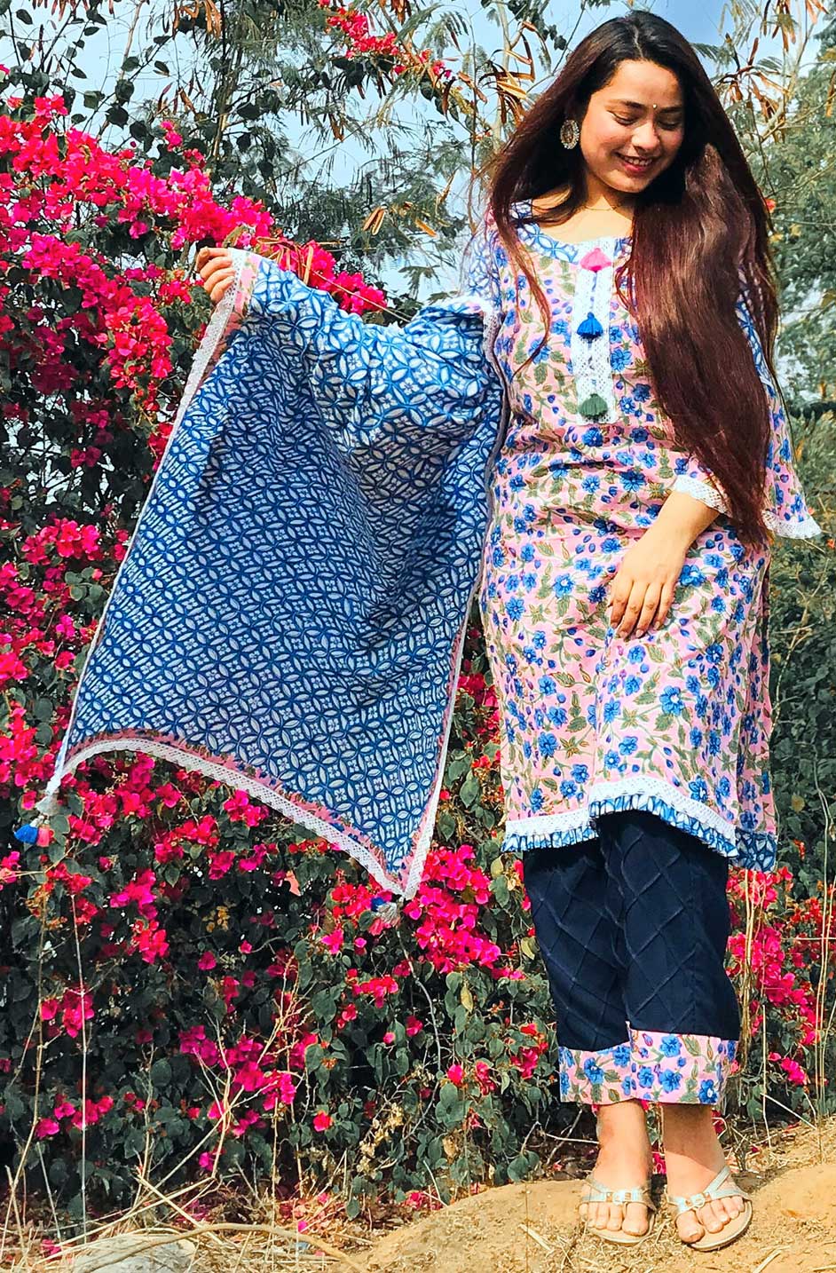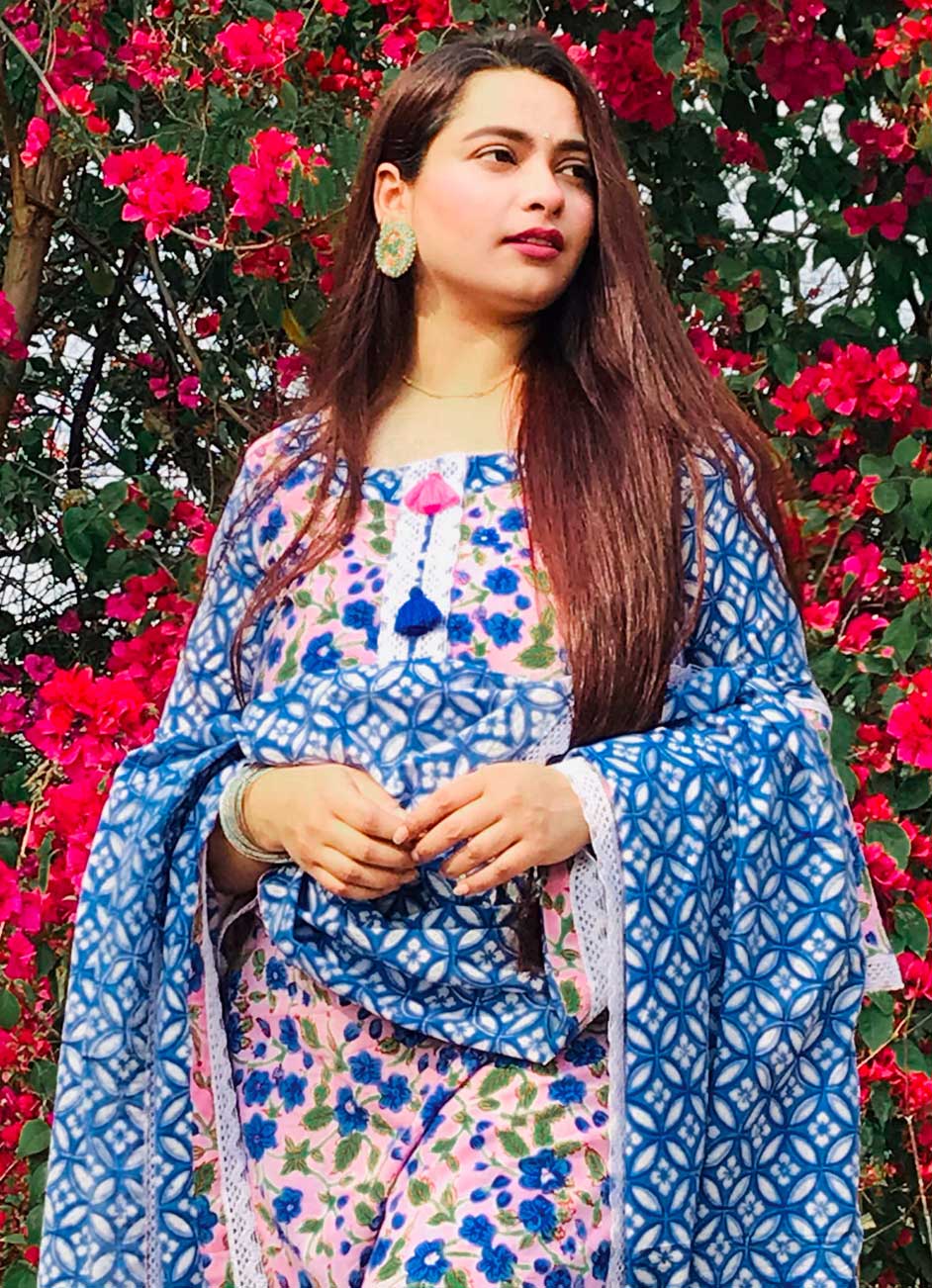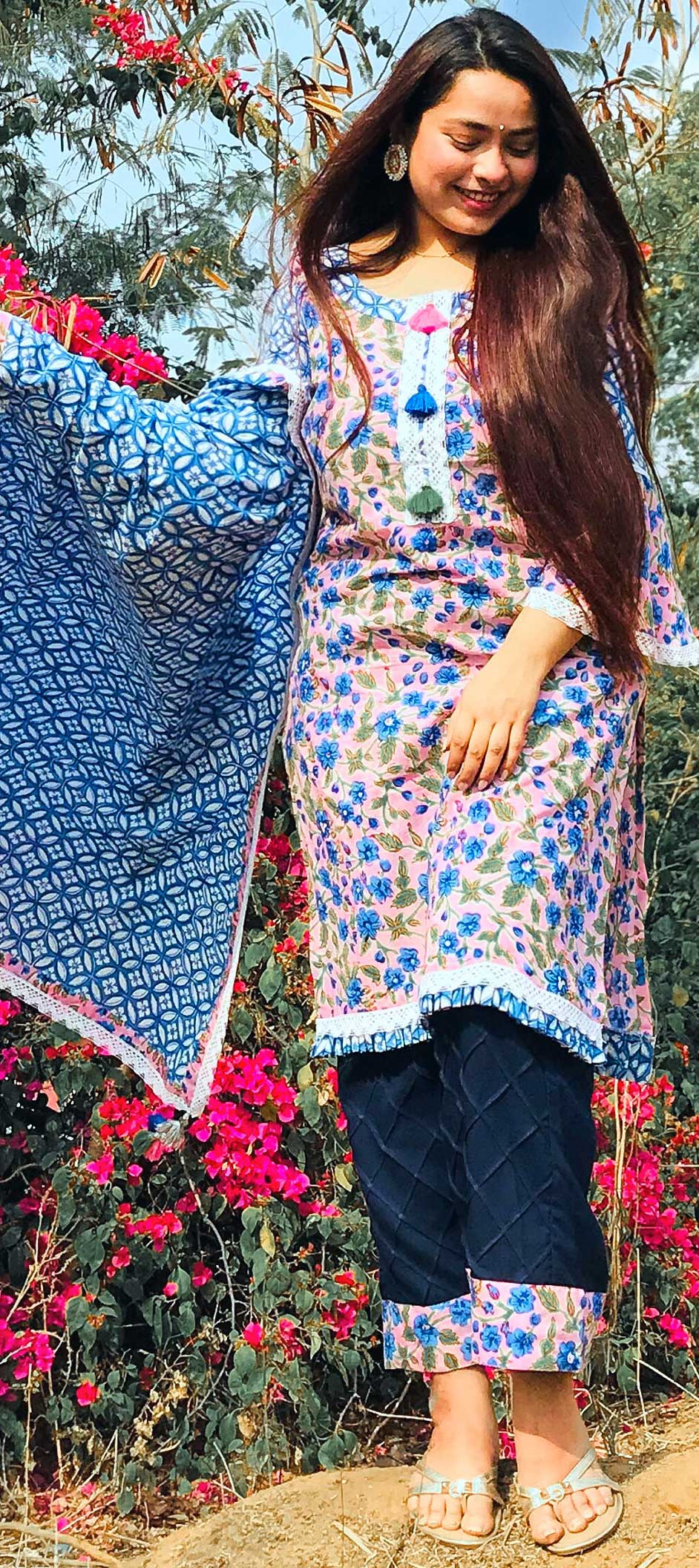 Pink and Majenta color Salwar Kameez in Cotton fabric with Floral, Printed work