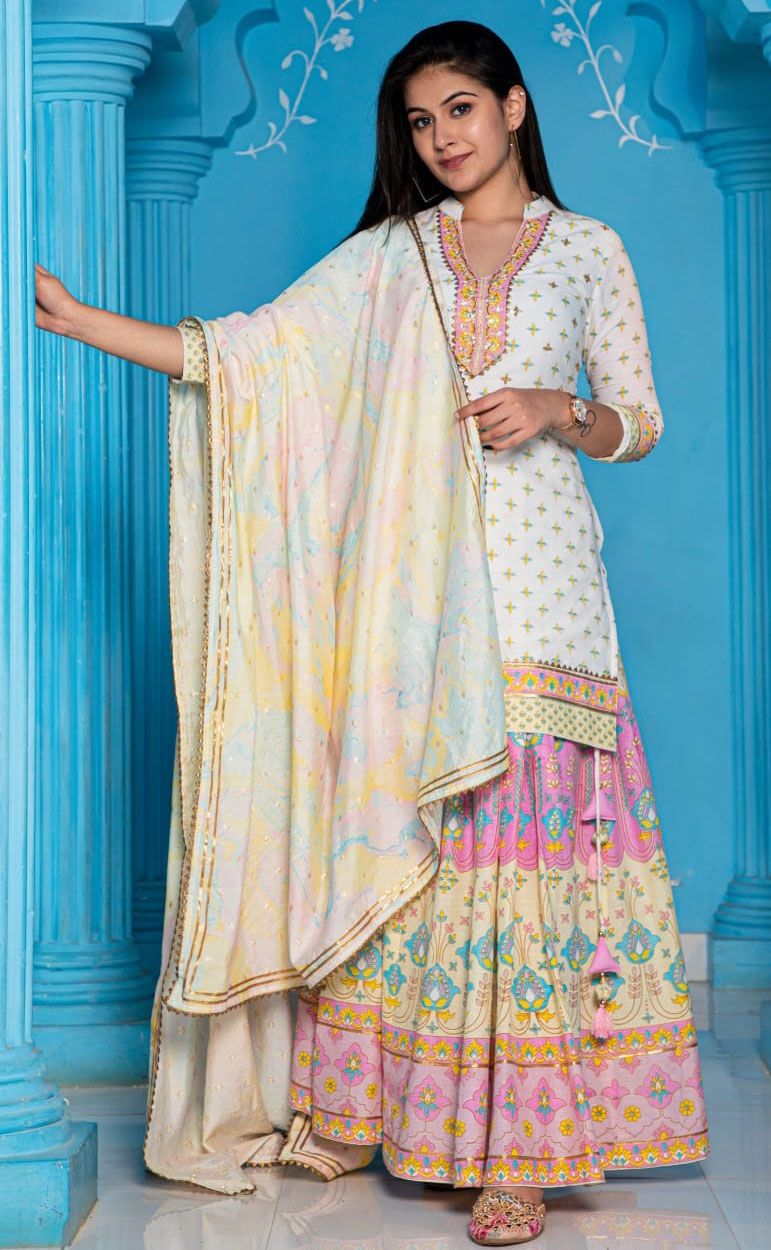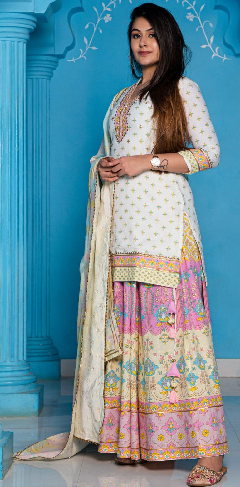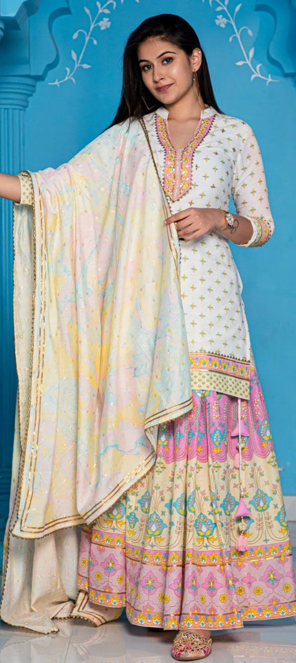 White and Off White color Salwar Kameez in Cotton fabric with Printed work