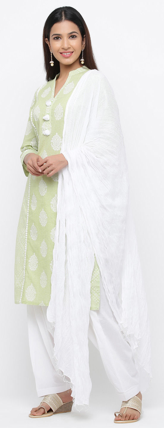 Green color Salwar Kameez in Cotton fabric with Floral, Printed work
