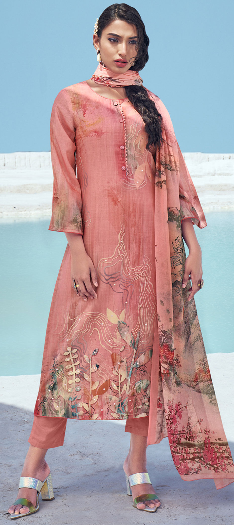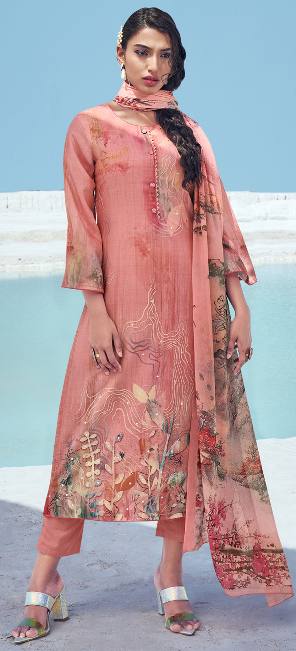 Pink and Majenta color Salwar Kameez in Cotton fabric with Digital Print, Floral, Mirror work
