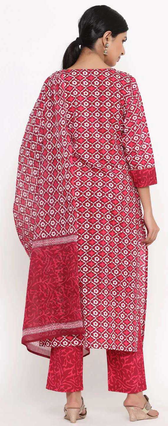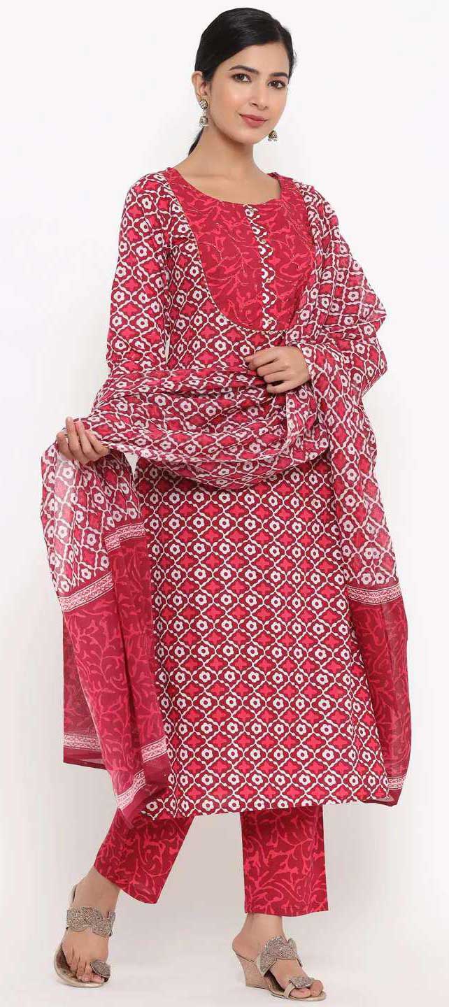 Pink and Majenta color Salwar Kameez in Cotton fabric with Printed work
