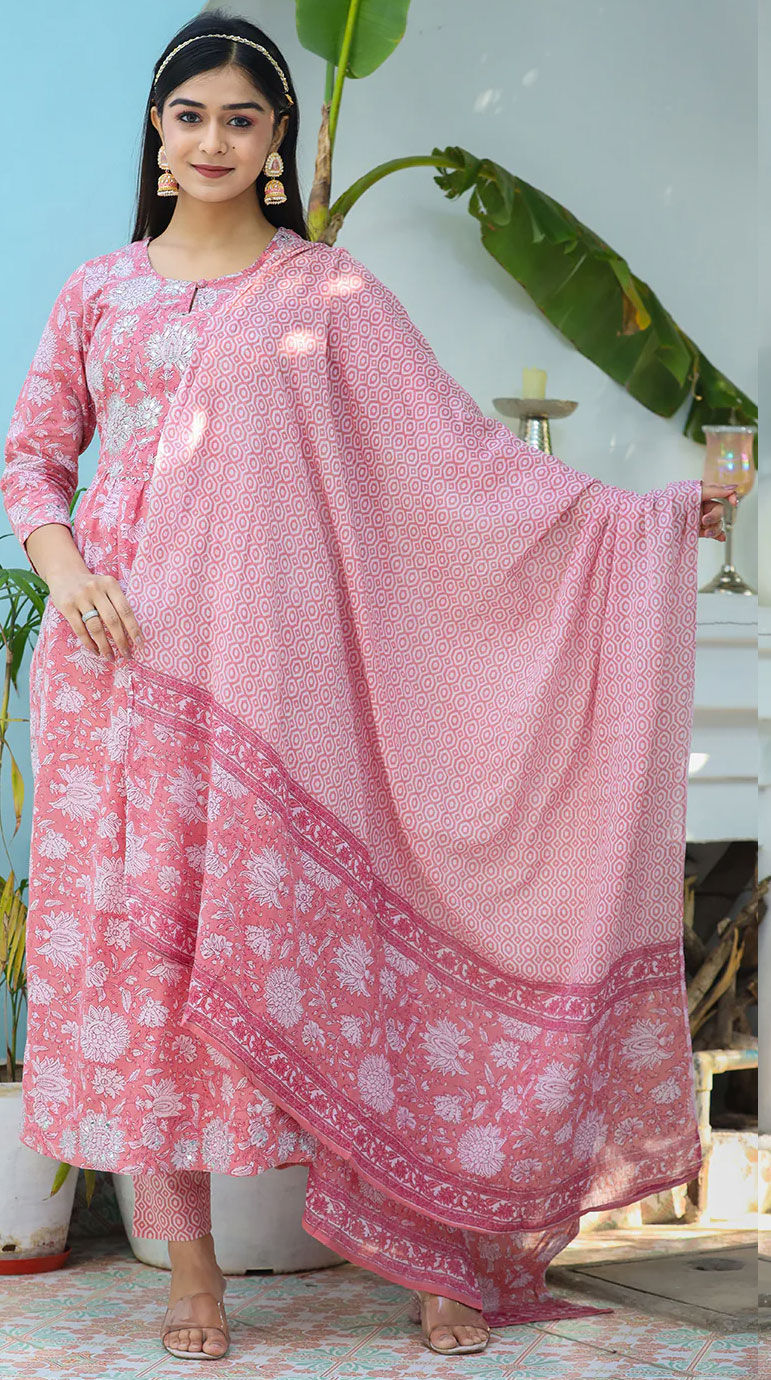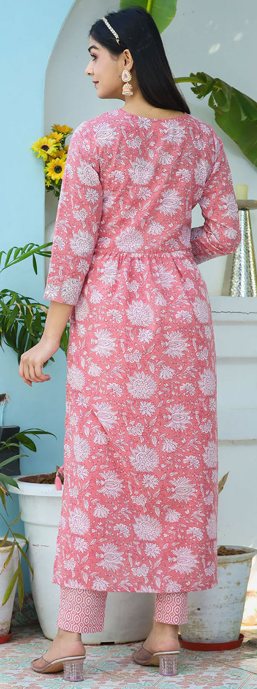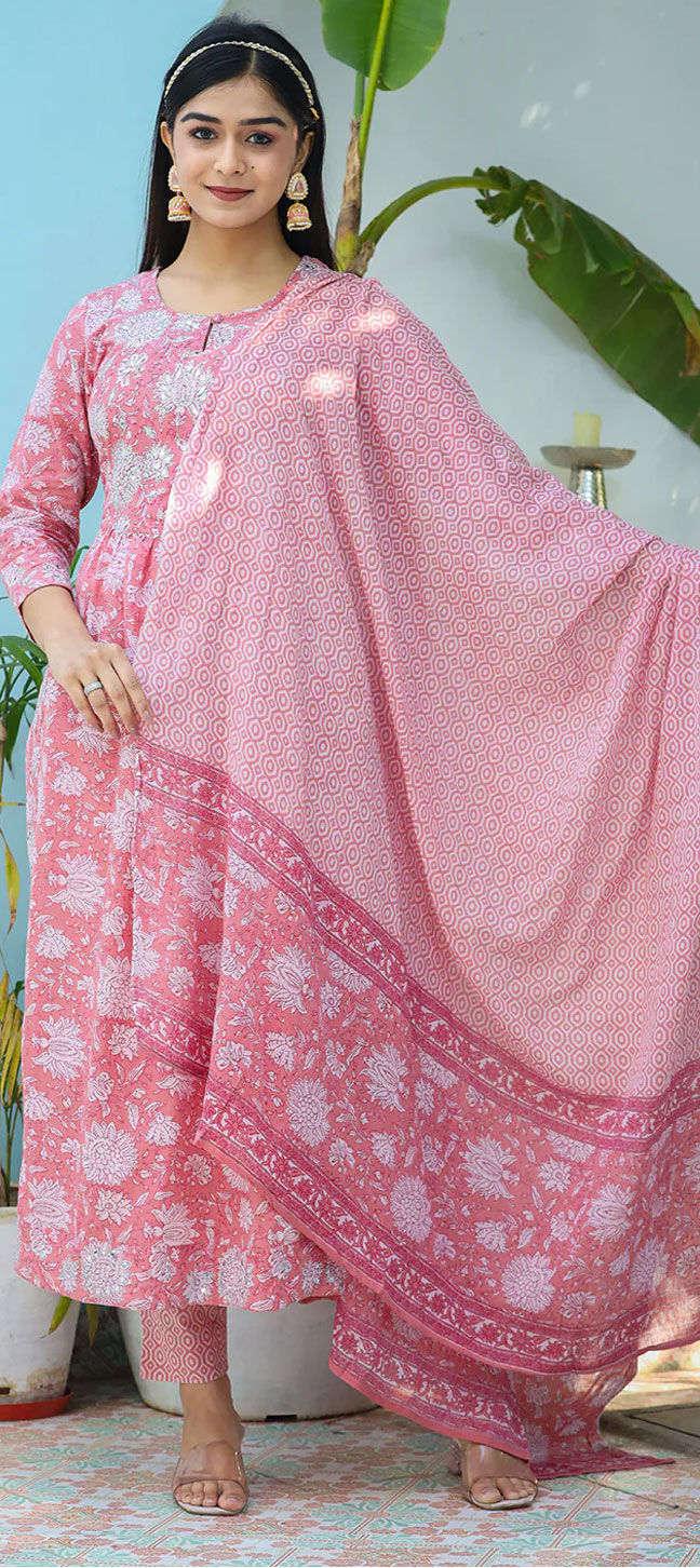 Pink and Majenta color Salwar Kameez in Cotton fabric with Printed work