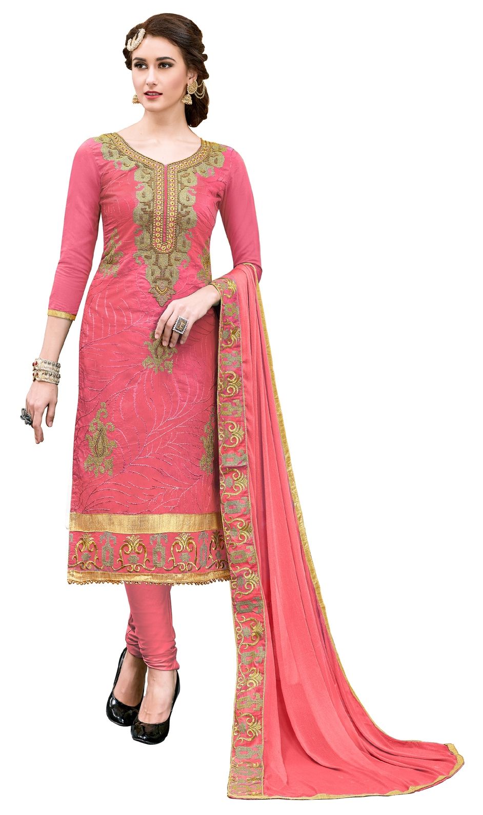 Pink and Majenta color Salwar Kameez in Cotton fabric with Embroidered, Thread, Zari work