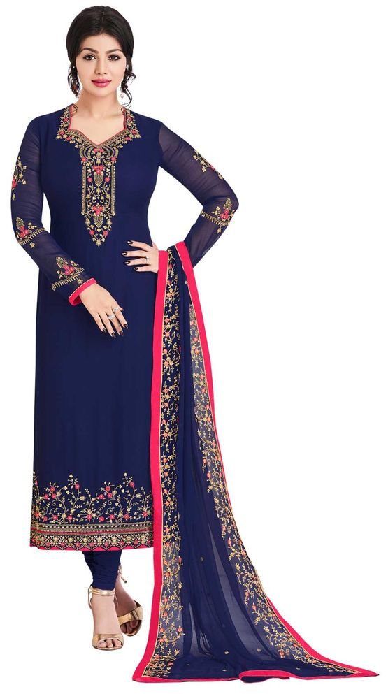 Blue color Salwar Kameez in Faux Georgette fabric with Embroidered, Resham, Stone, Thread, Zari work