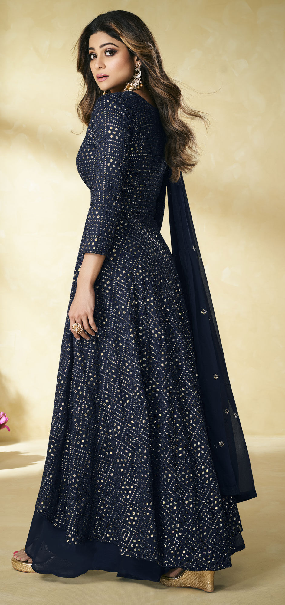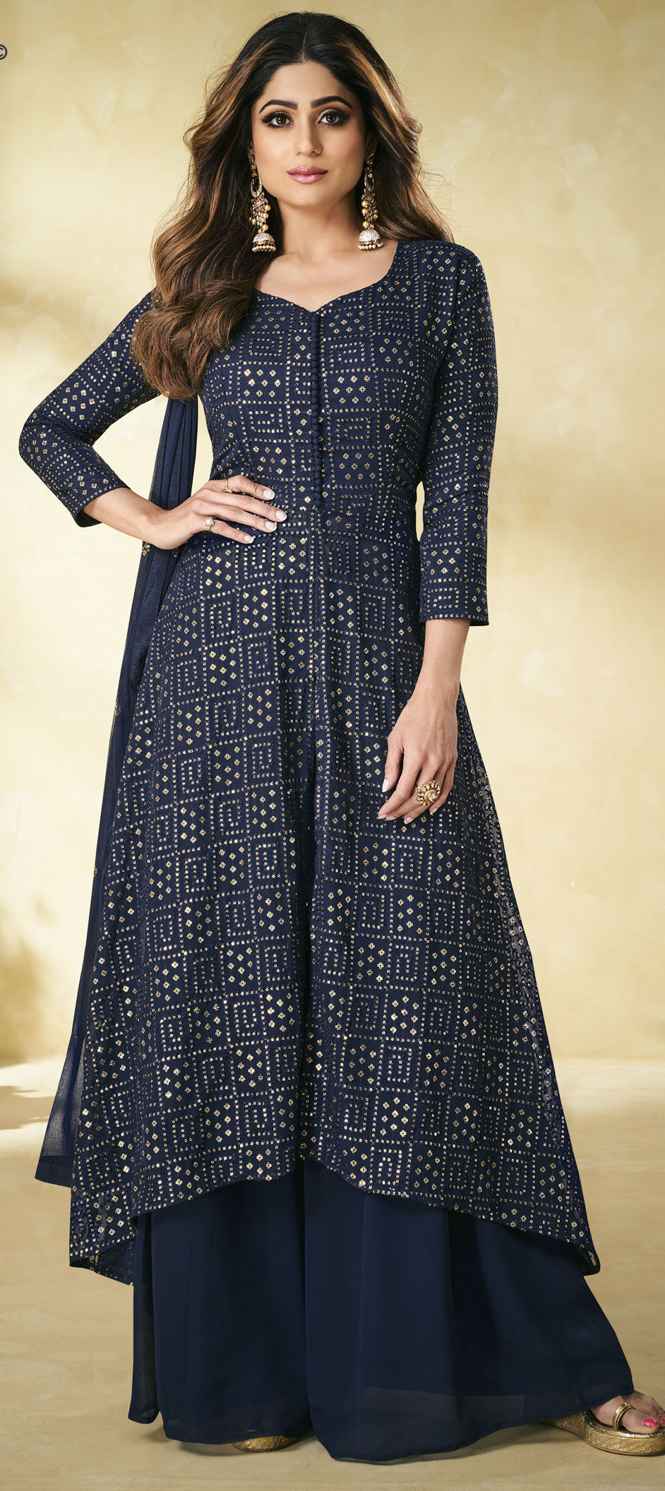 Blue color Salwar Kameez in Faux Georgette fabric with Embroidered, Sequence, Thread work