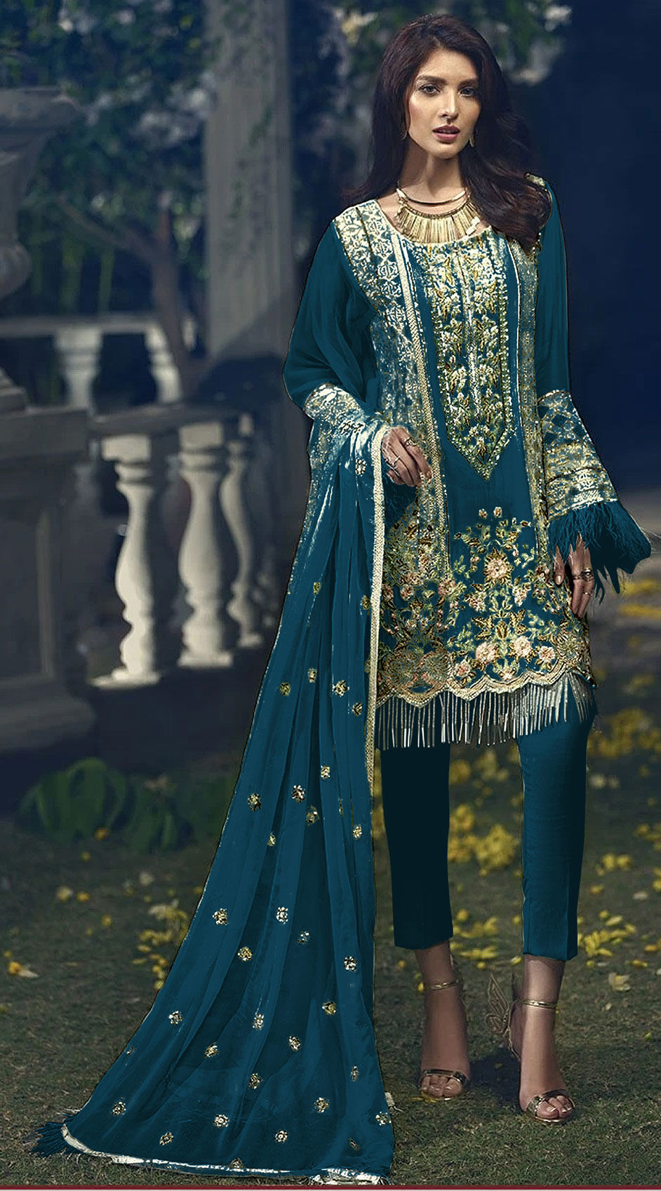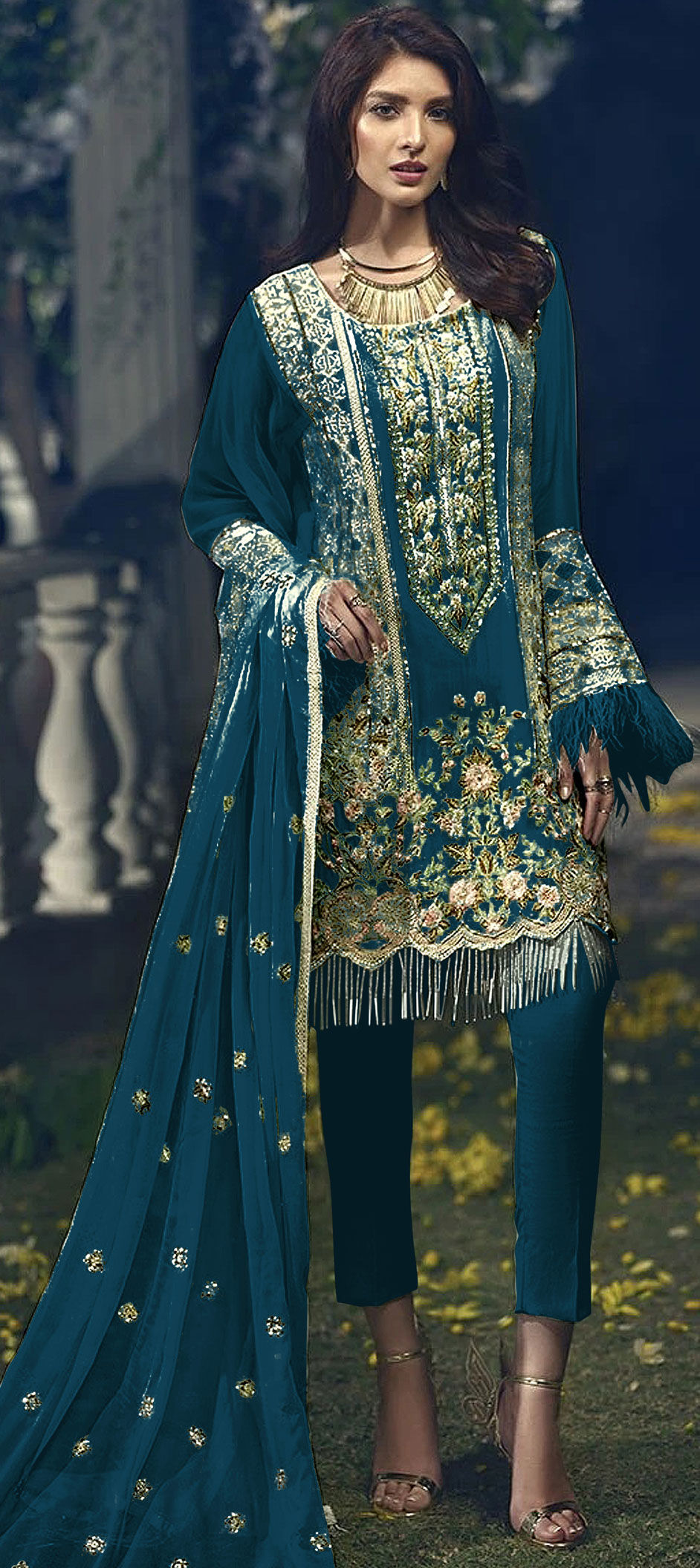 Blue color Salwar Kameez in Faux Georgette fabric with Embroidered, Thread work