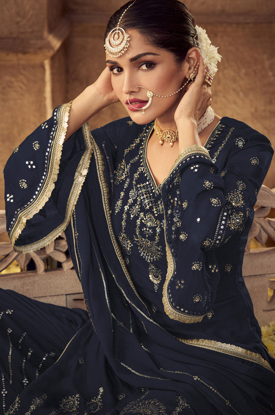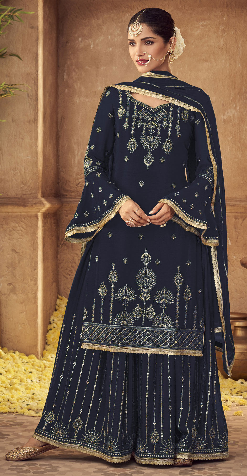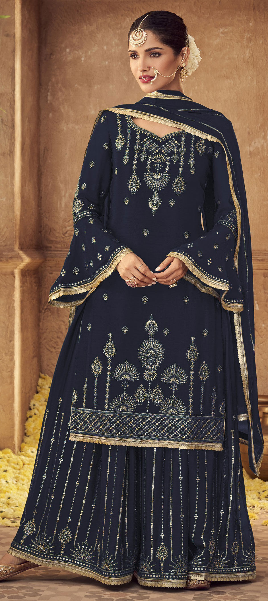 Blue color Salwar Kameez in Faux Georgette fabric with Embroidered, Resham, Thread work