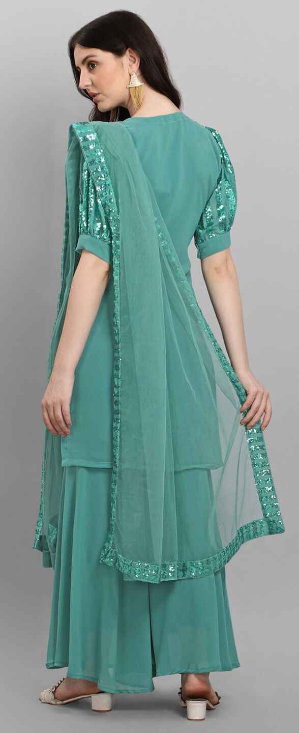 Blue color Salwar Kameez in Faux Georgette fabric with Sequence work