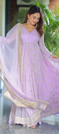 Purple and Violet color Salwar Kameez in Faux Georgette fabric with Embroidered, Sequence, Thread, Zari work