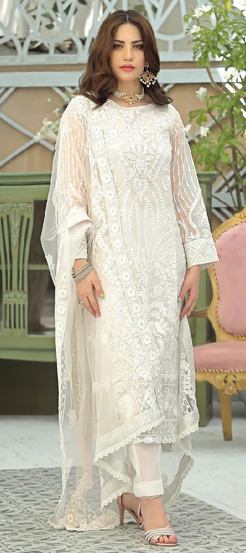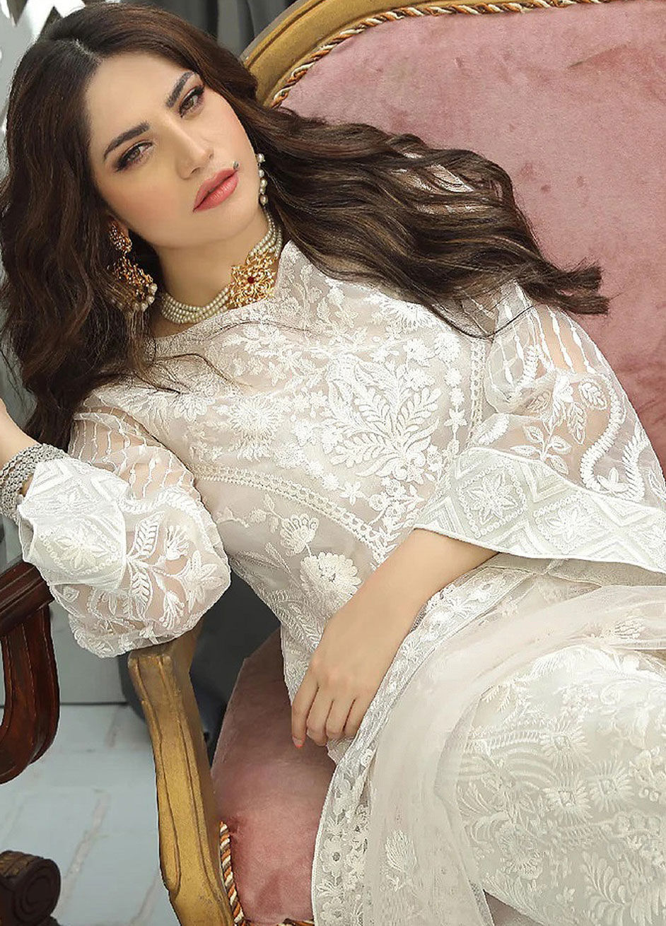 in White and Off White with Embroidered work
