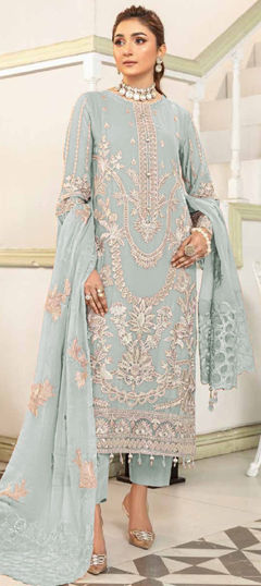 Black and Grey color Salwar Kameez in Faux Georgette fabric with Embroidered, Sequence, Thread work