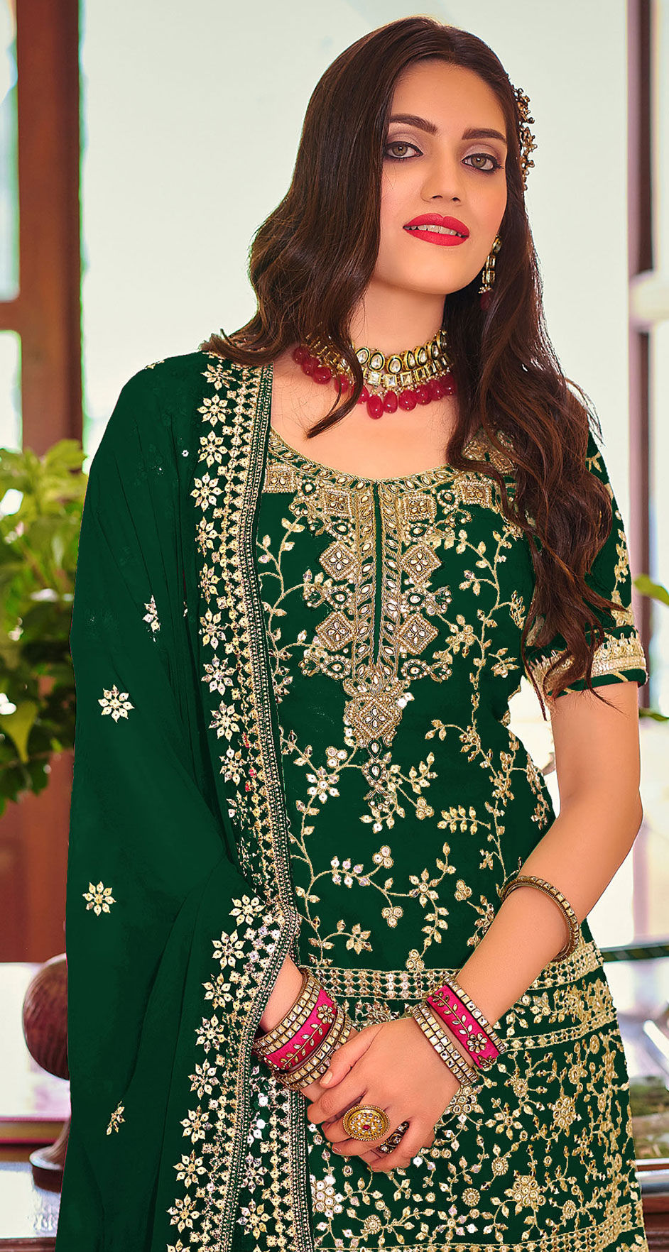 in Green with Thread work