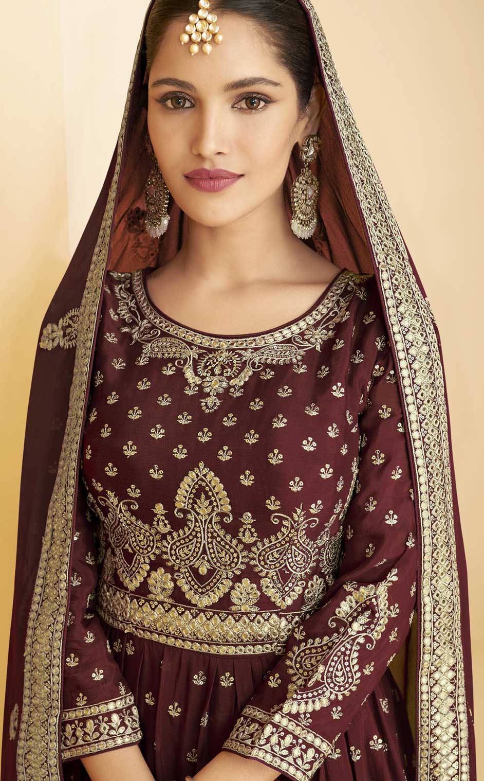 Red and Maroon color Salwar Kameez in Faux Georgette fabric with Embroidered, Sequence, Thread work