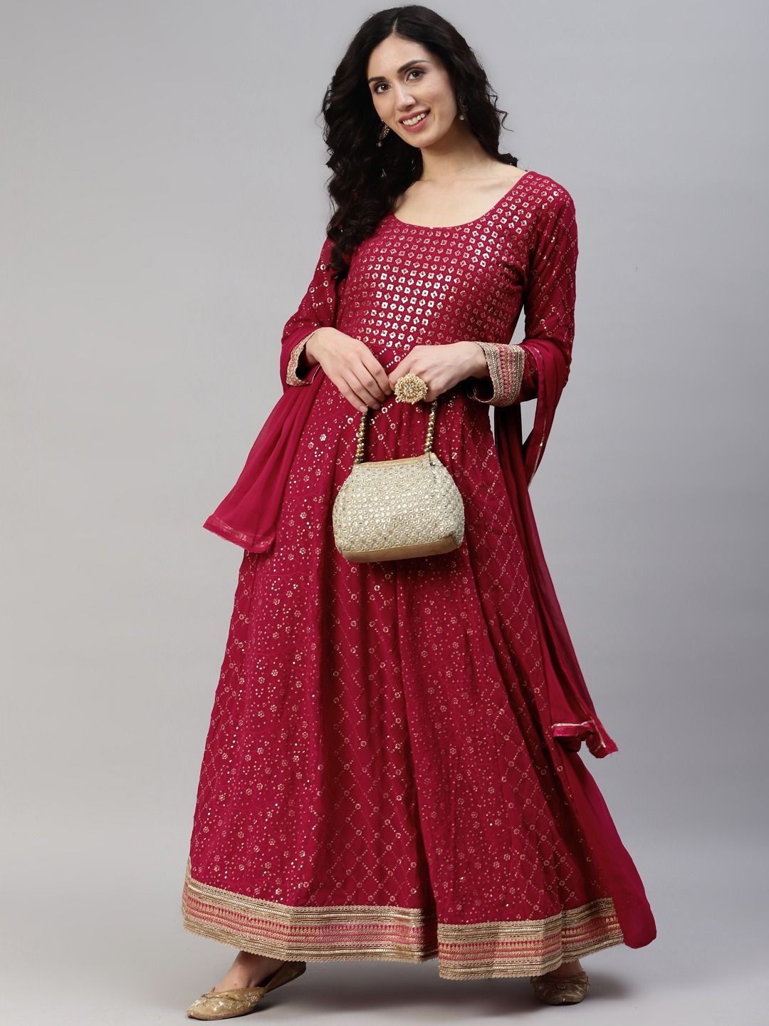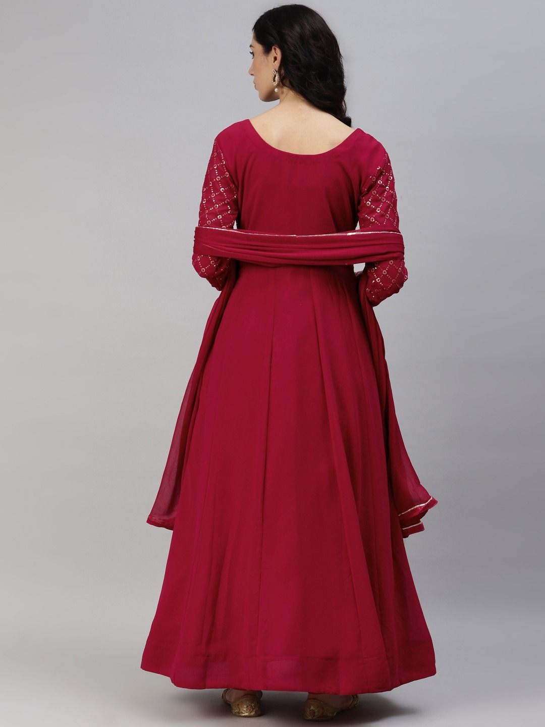 Red and Maroon color Salwar Kameez in Georgette fabric with Embroidered, Sequence, Thread work
