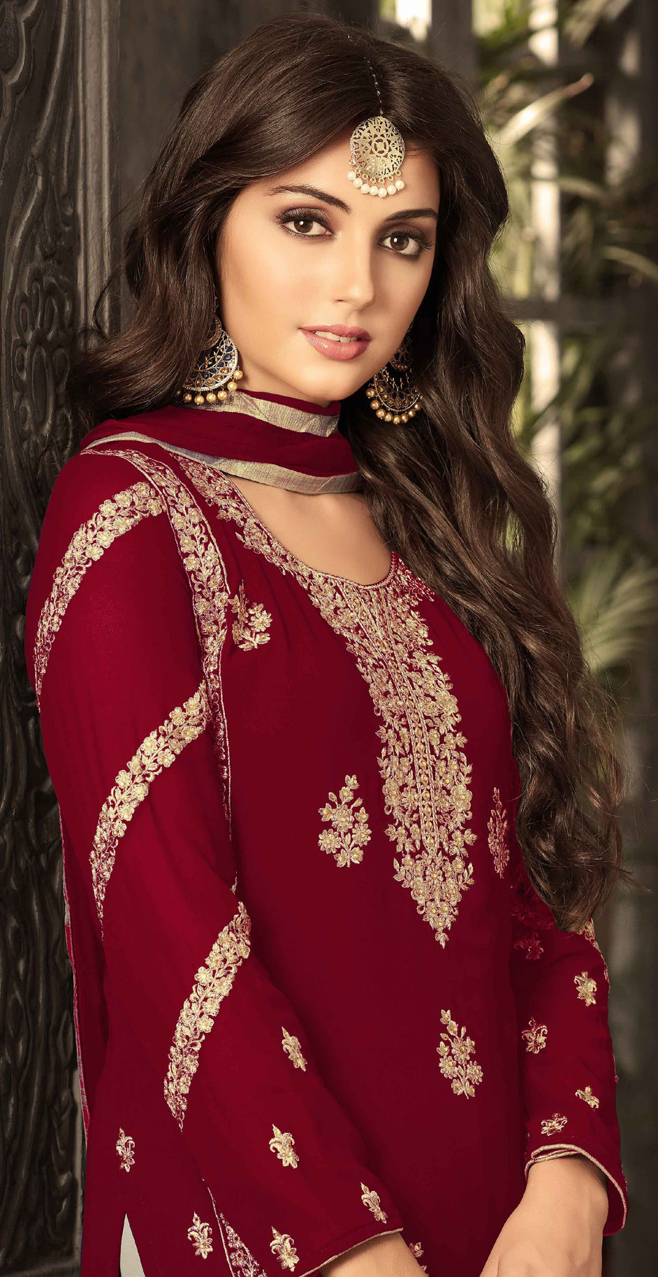 in Red and Maroon with Zari work