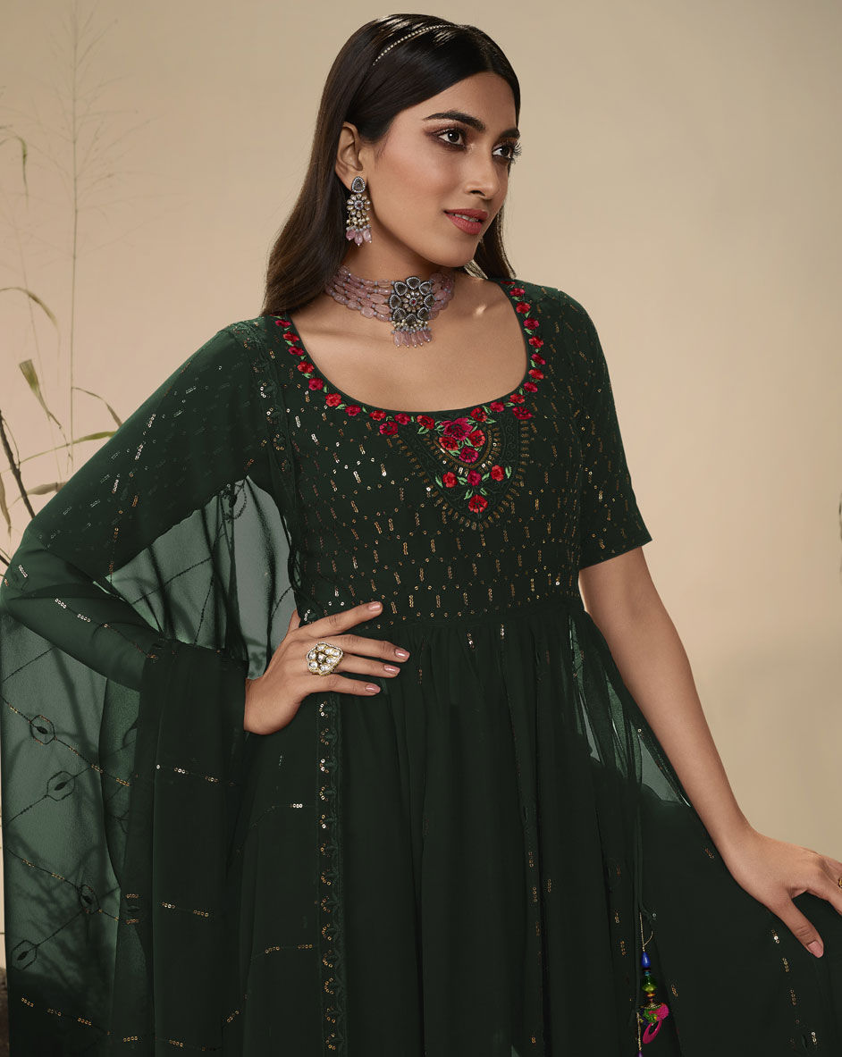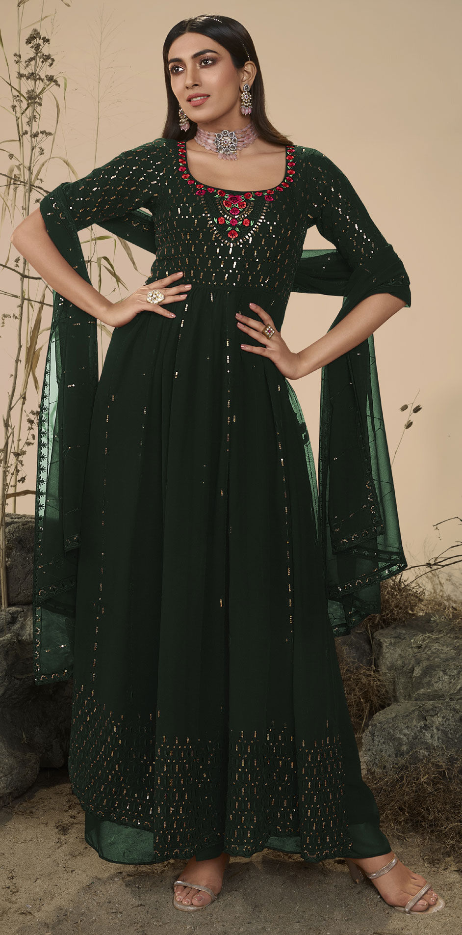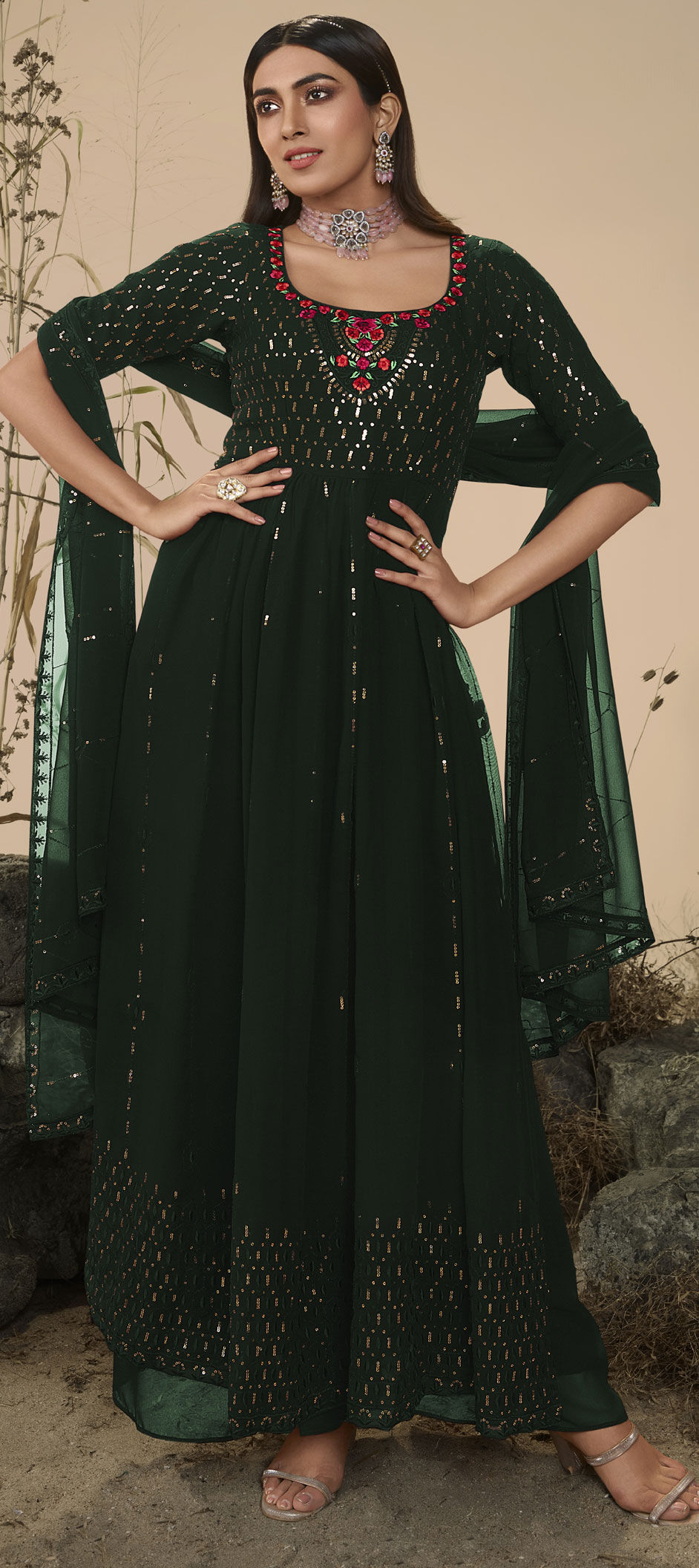 Green color Salwar Kameez in Georgette fabric with Embroidered, Resham, Sequence, Thread work