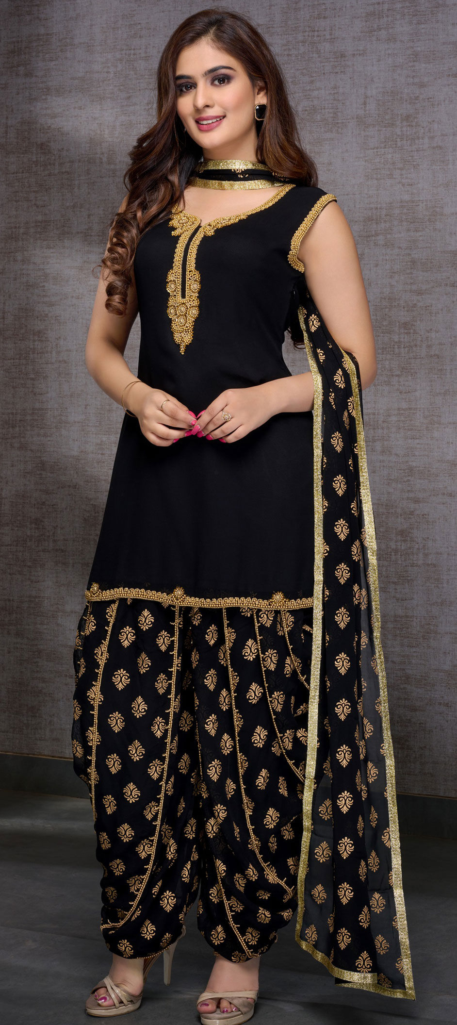 Black and Grey color Salwar Kameez in Georgette fabric with Bugle Beads work