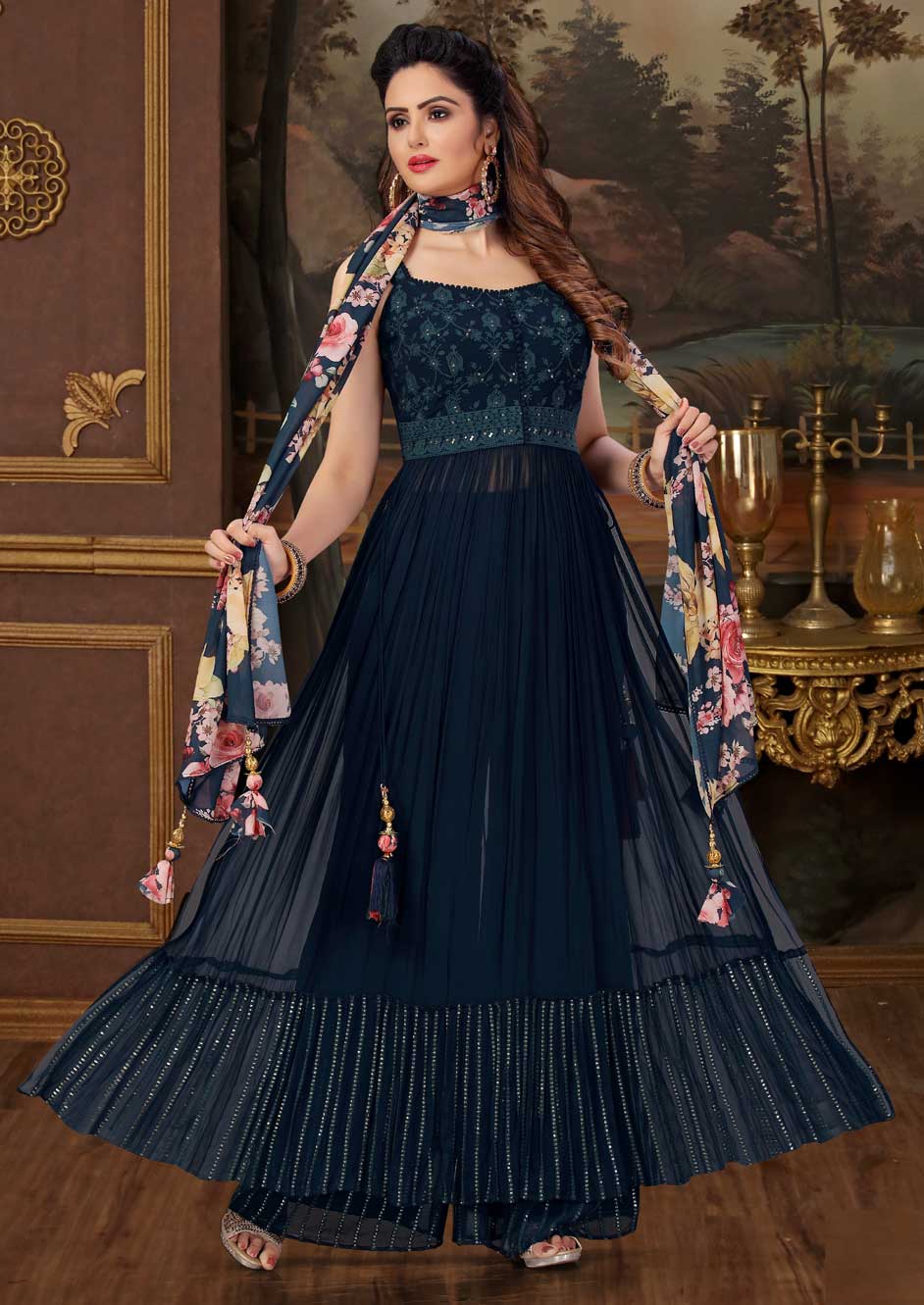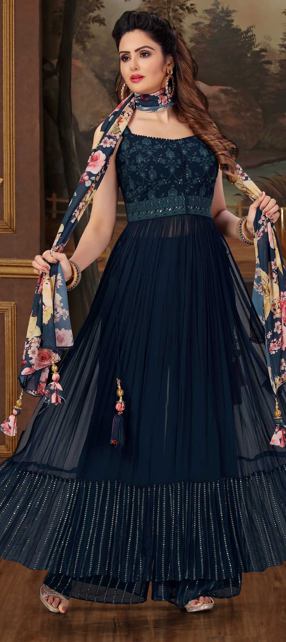 Blue color Salwar Kameez in Georgette fabric with Embroidered, Sequence, Thread work