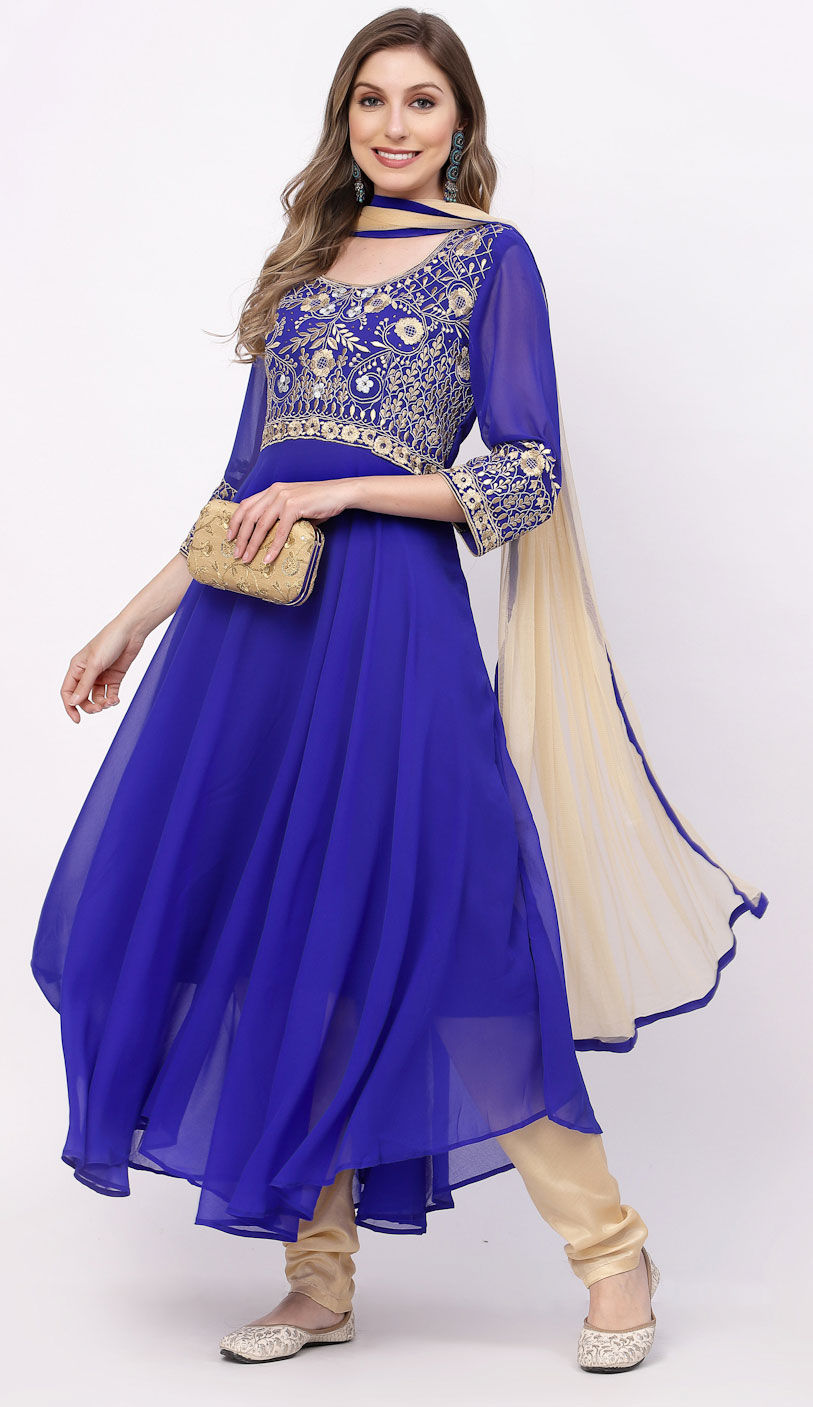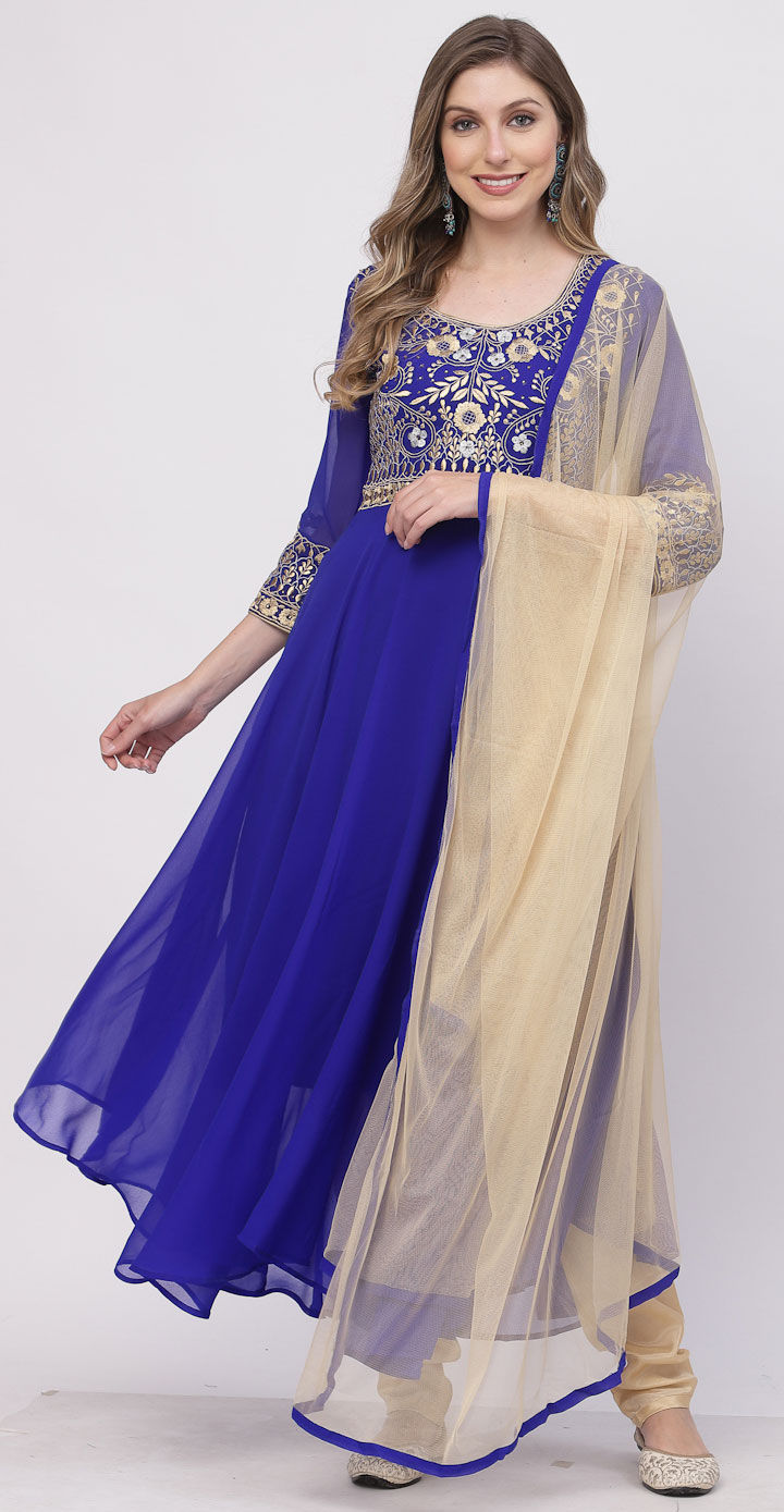 Blue color Salwar Kameez in Georgette fabric with Embroidered work