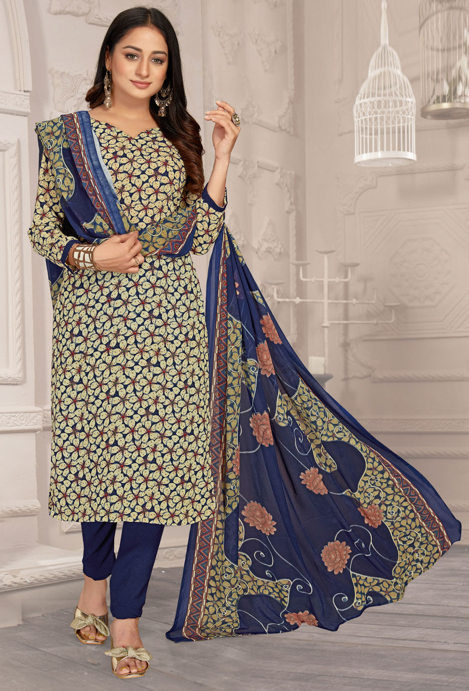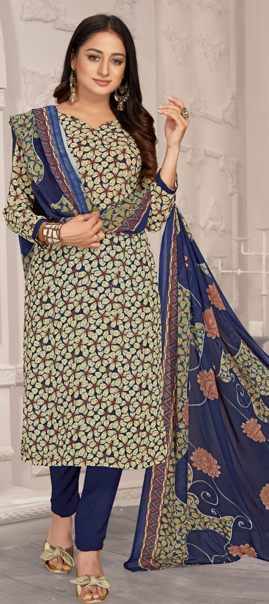 Blue color Salwar Kameez in Crepe Silk, Georgette fabric with Floral, Printed work