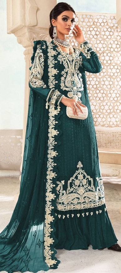Green color Salwar Kameez in Georgette fabric with Embroidered, Thread, Zari work