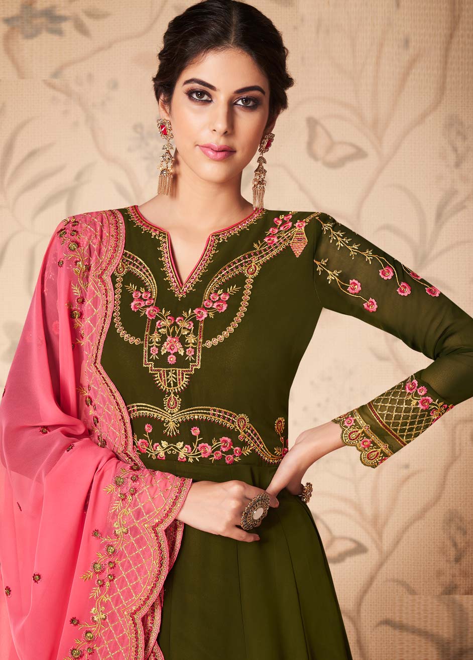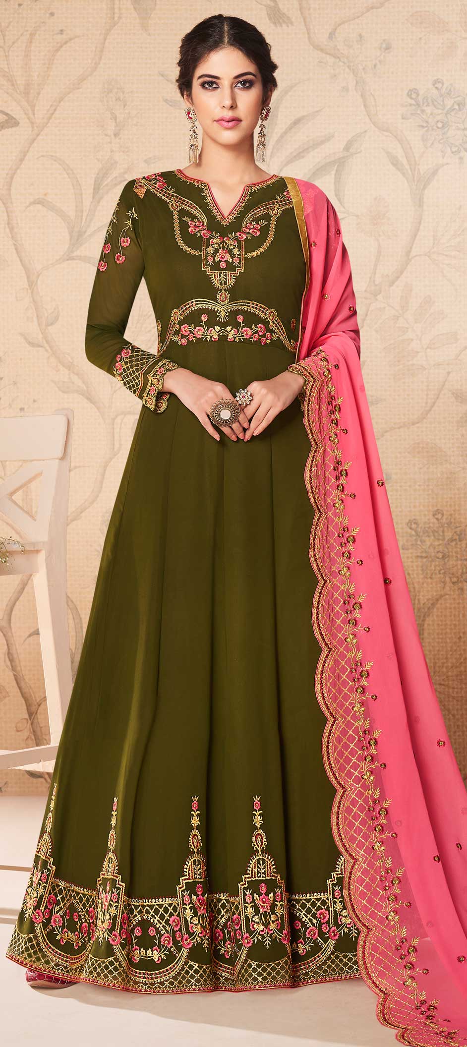 Green color Salwar Kameez in Georgette fabric with Embroidered, Resham, Thread work
