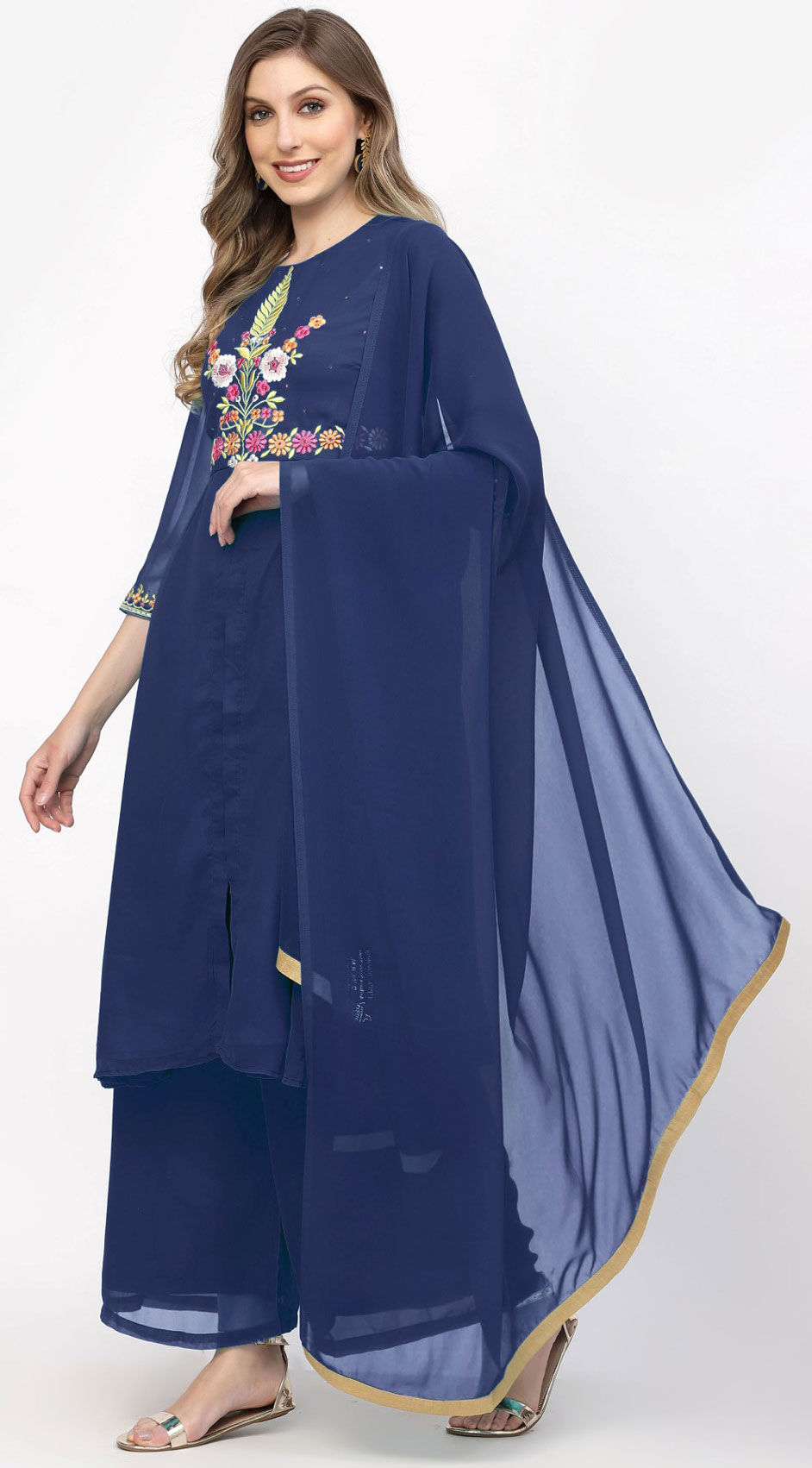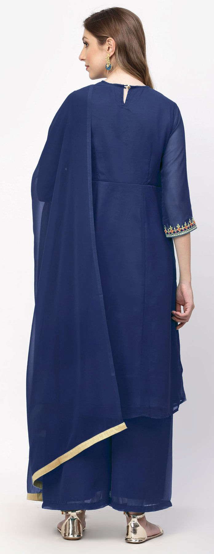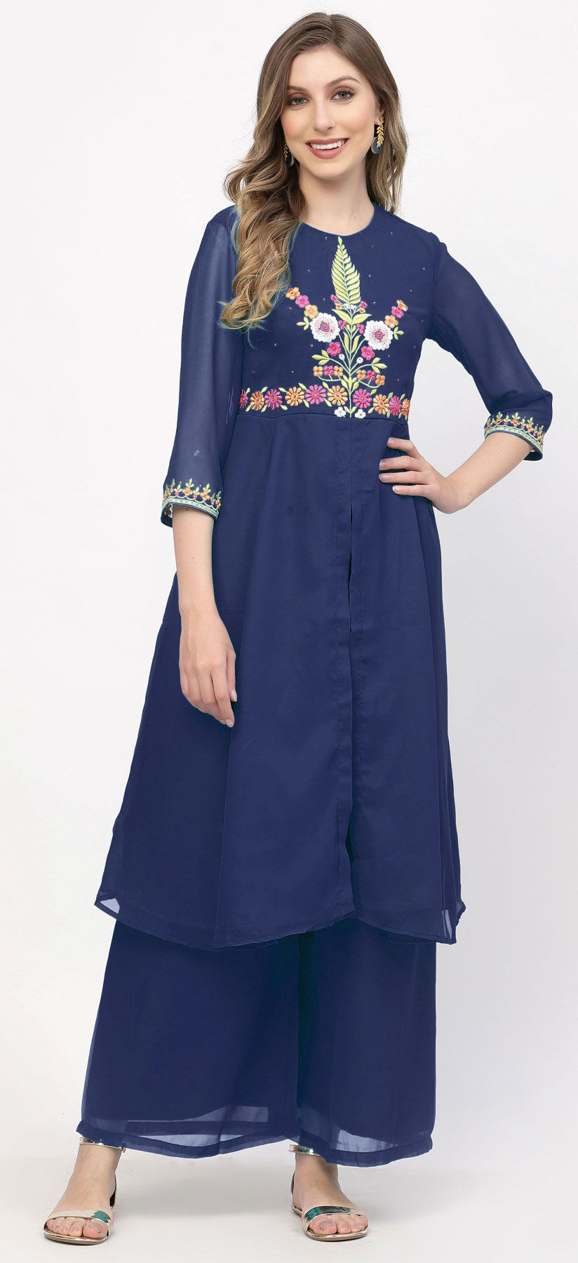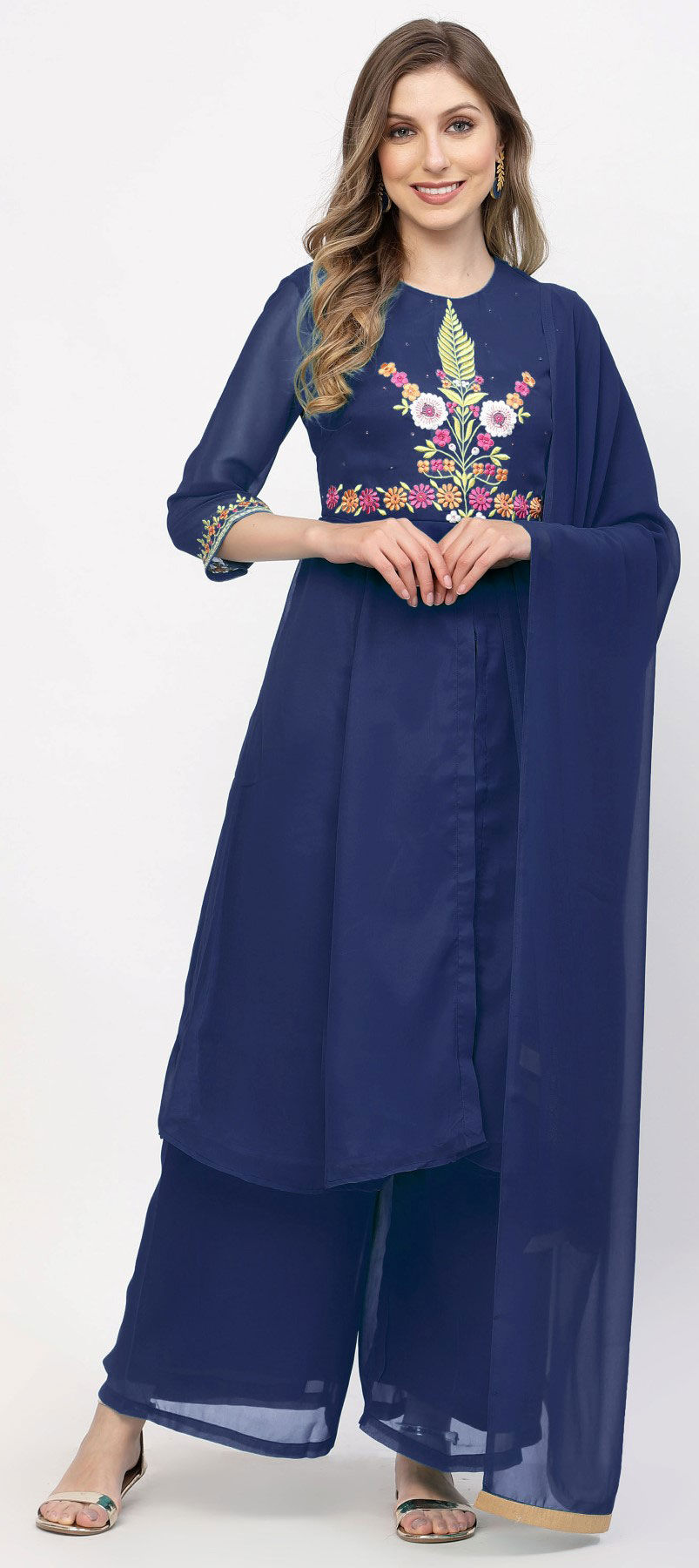 Blue color Salwar Kameez in Georgette fabric with Embroidered work