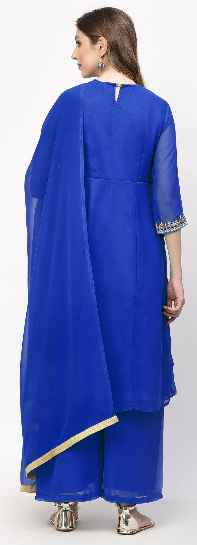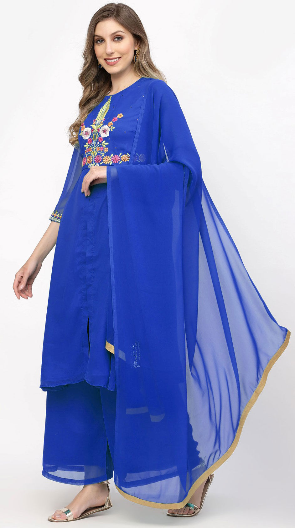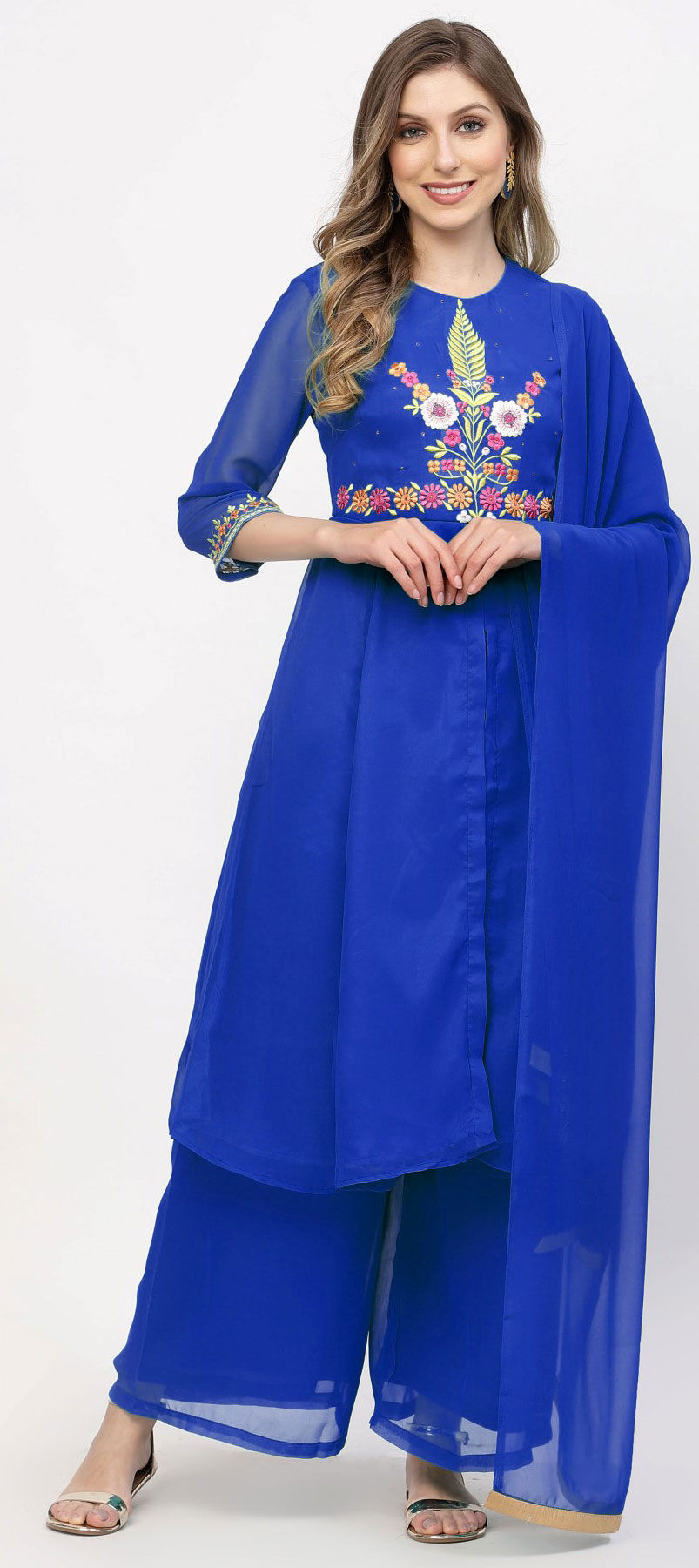 Blue color Salwar Kameez in Georgette fabric with Embroidered work