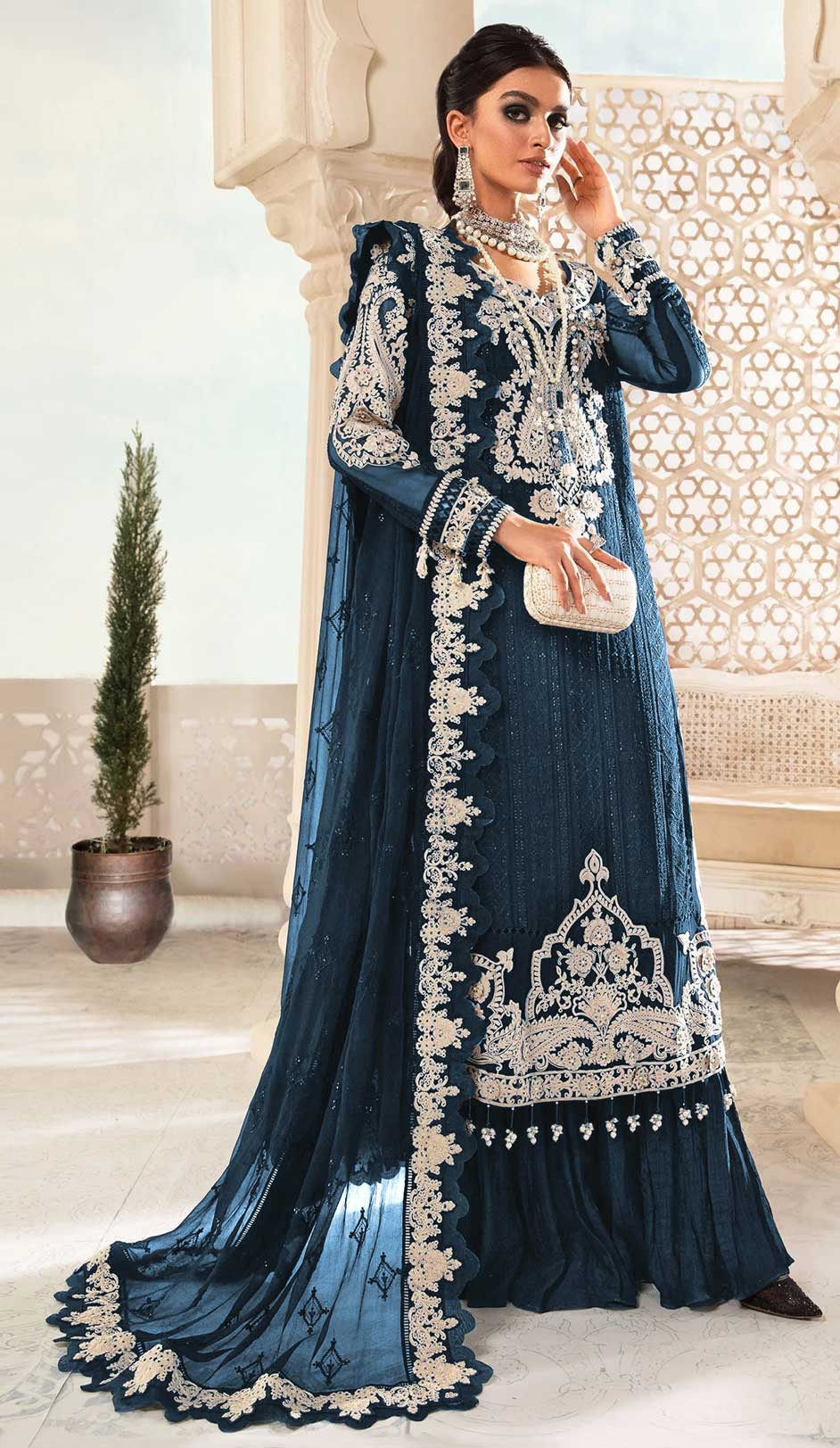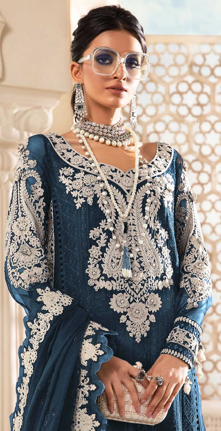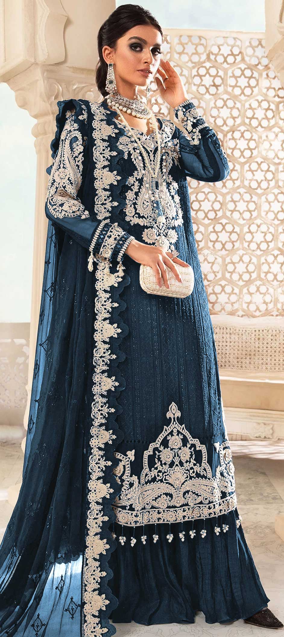 Blue color Salwar Kameez in Georgette fabric with Embroidered, Thread, Zari work