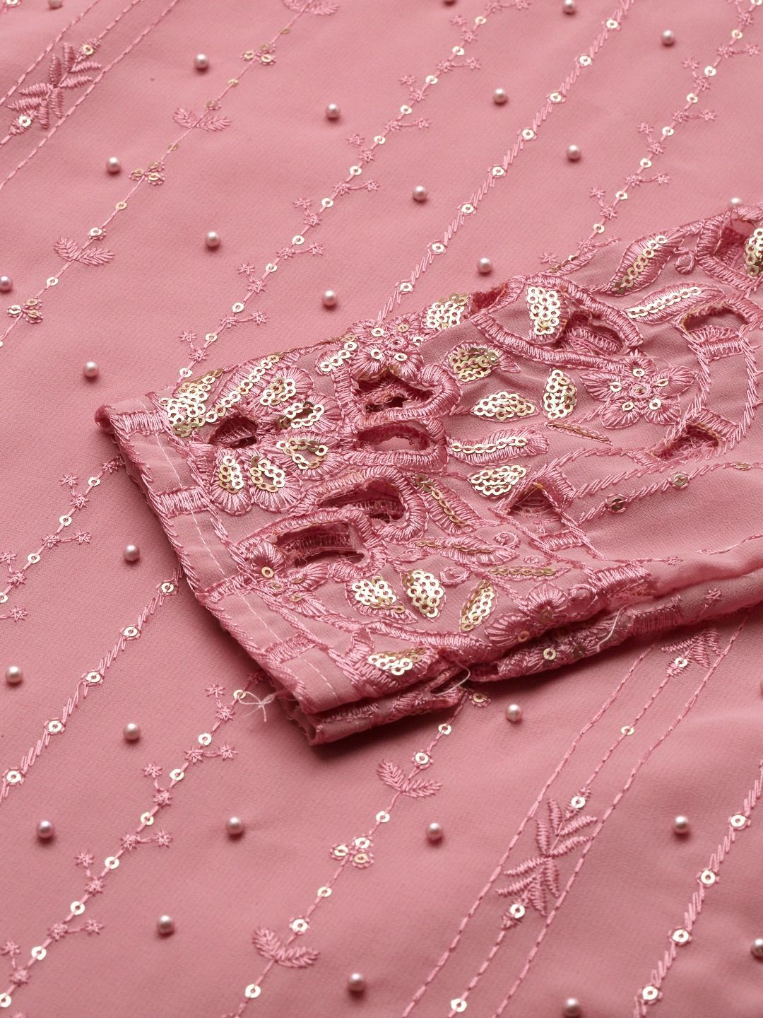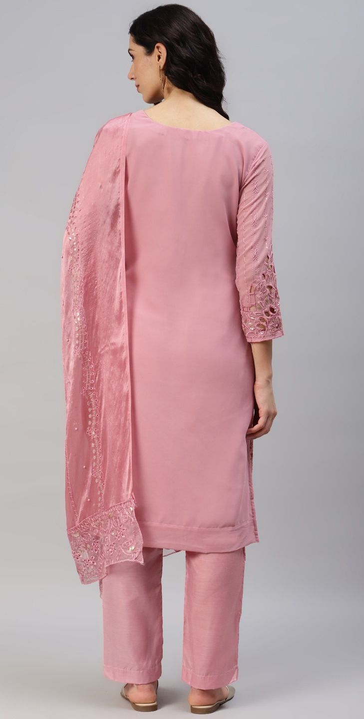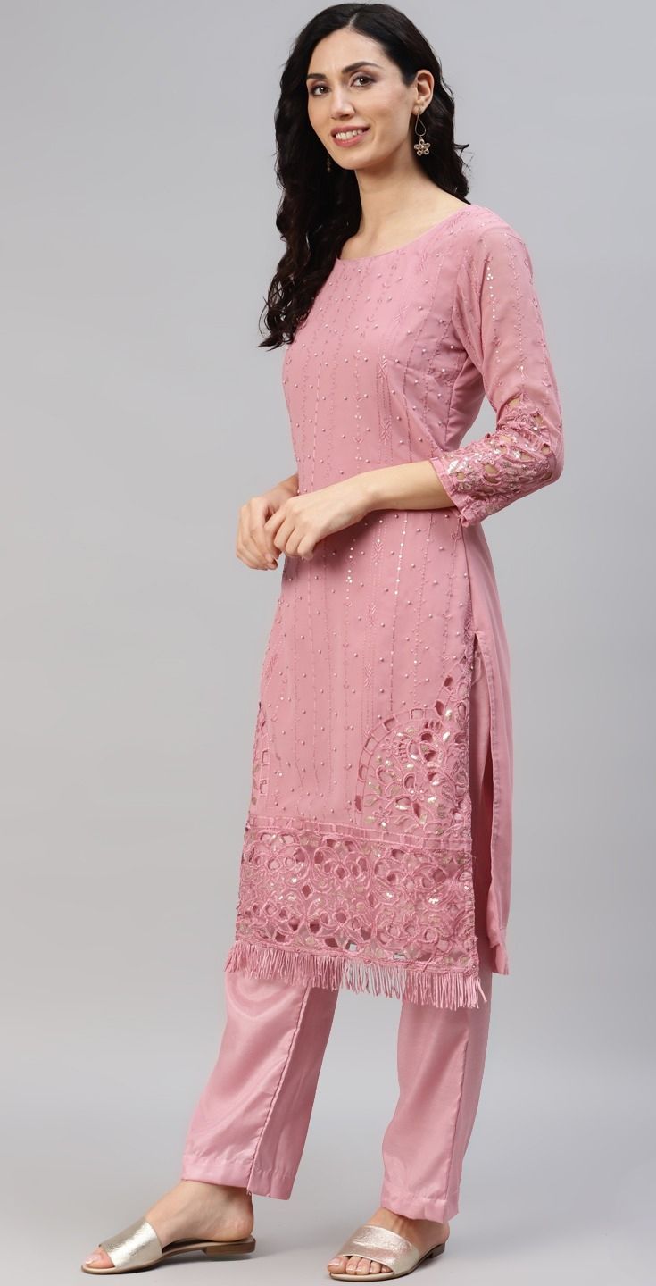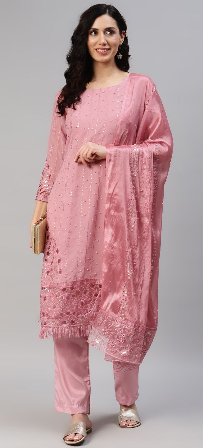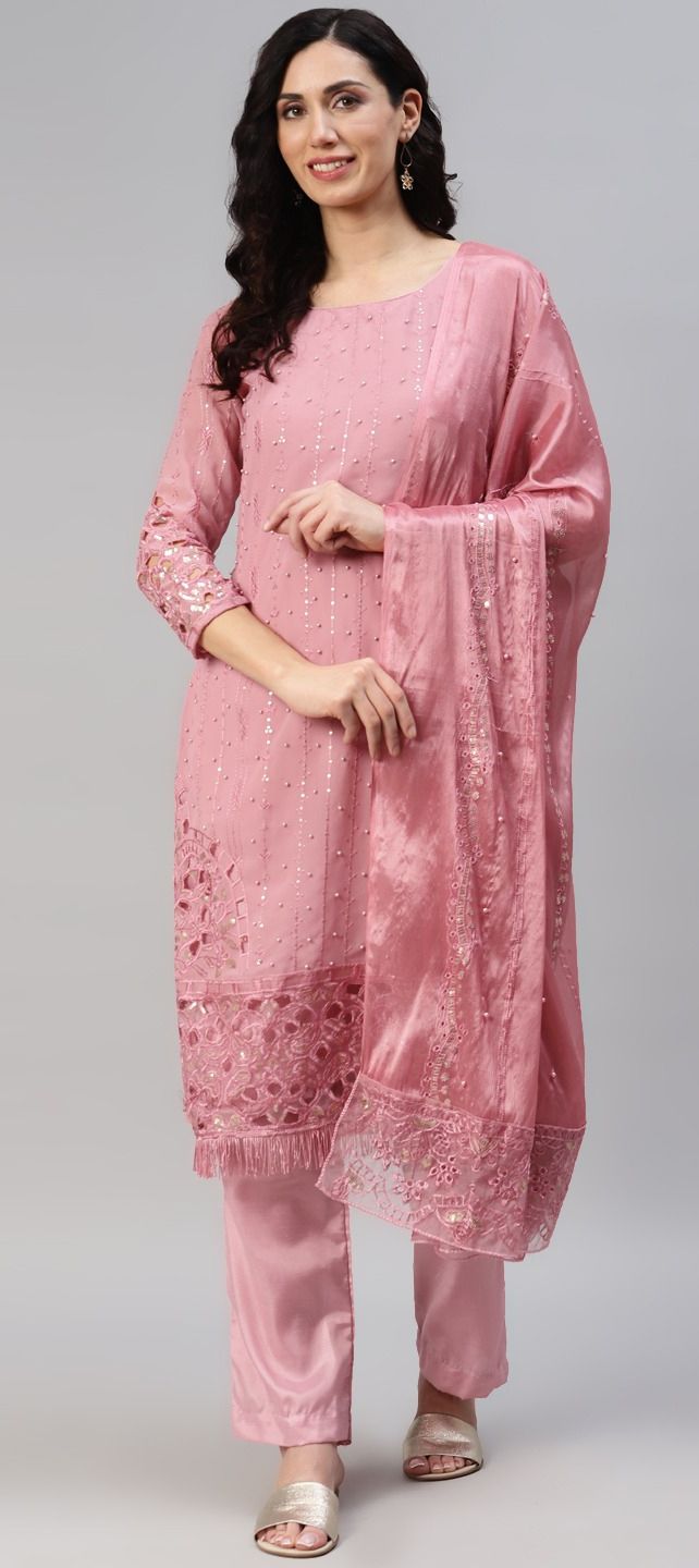 Pink and Majenta color Salwar Kameez in Georgette fabric with Bugle Beads, Embroidered, Resham, Thread work