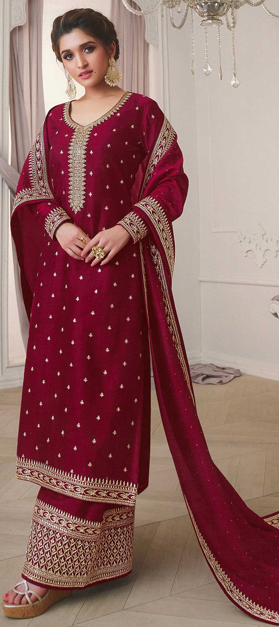 in Red and Maroon with Thread work