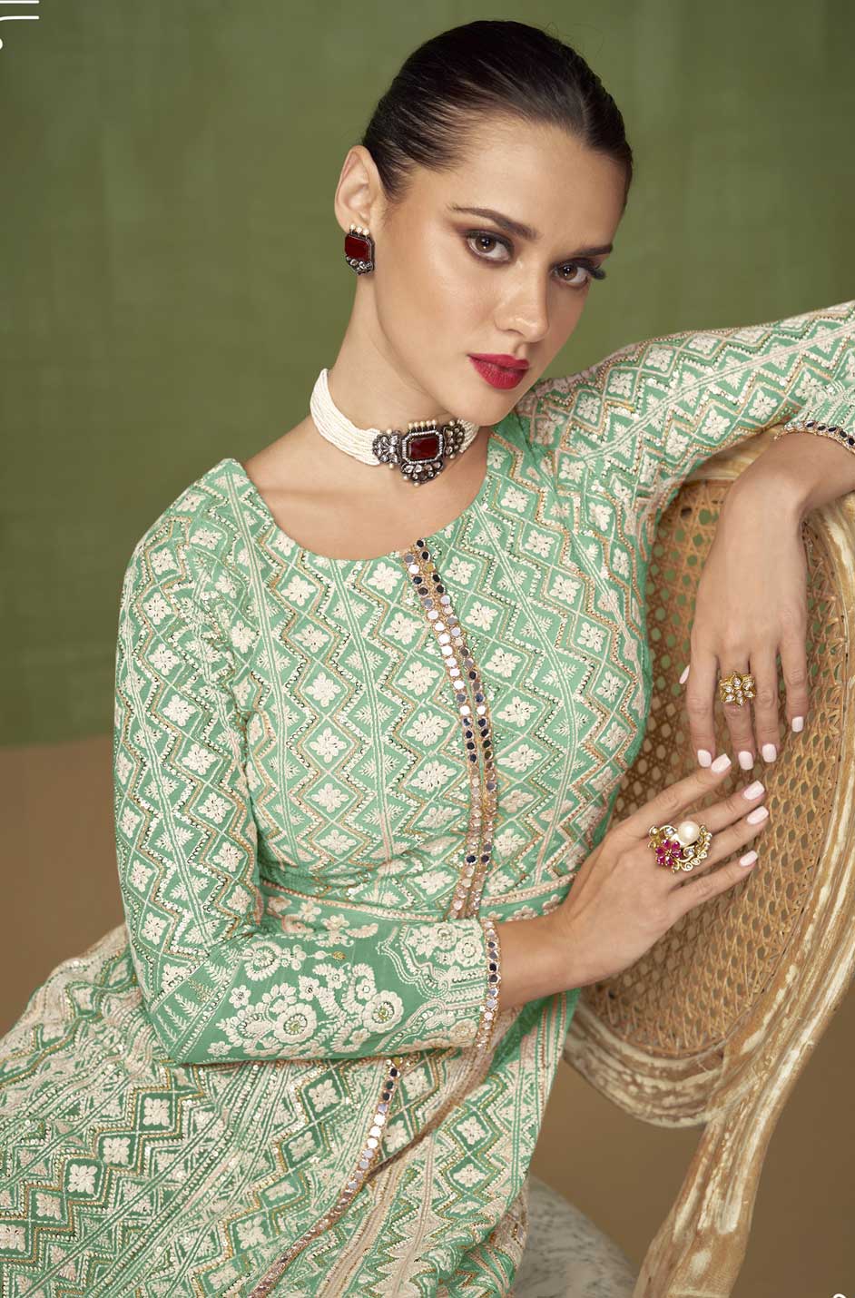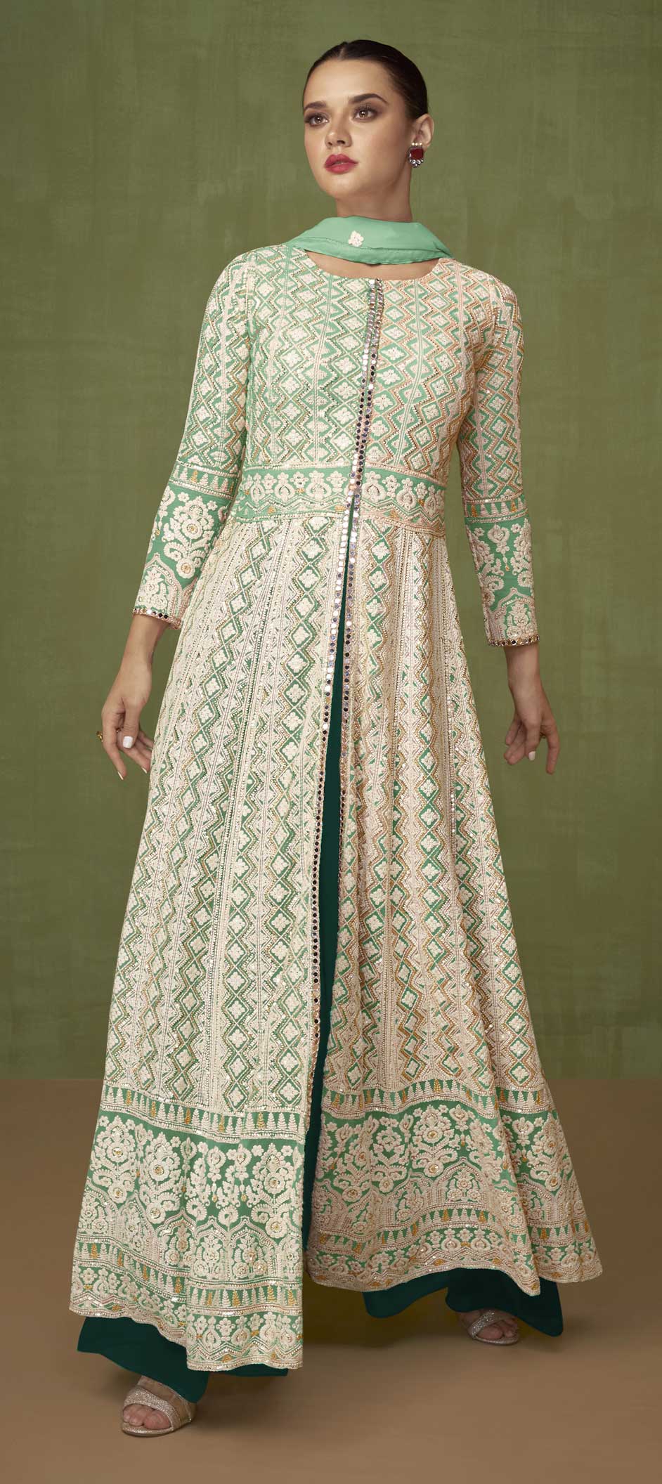 Green color Salwar Kameez in Georgette fabric with Embroidered, Mirror, Sequence, Thread work