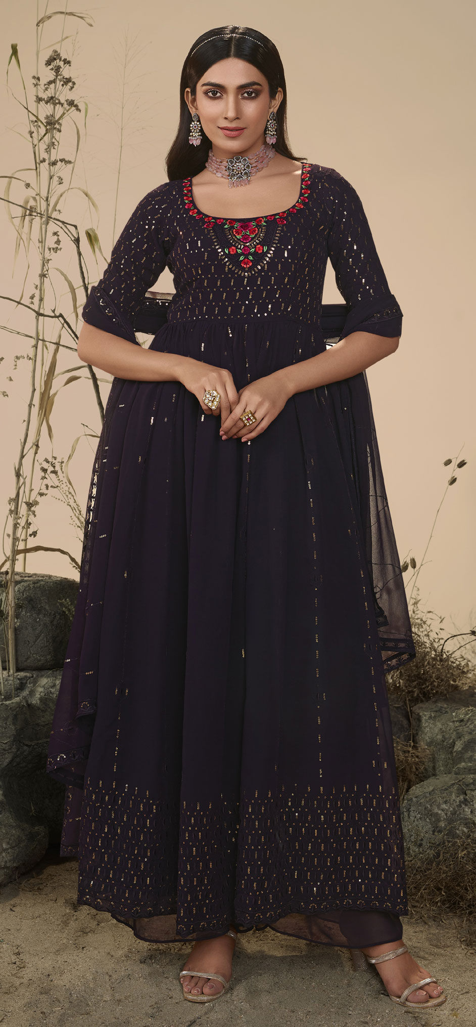 Purple and Violet color Salwar Kameez in Georgette fabric with Embroidered, Resham, Sequence, Thread work
