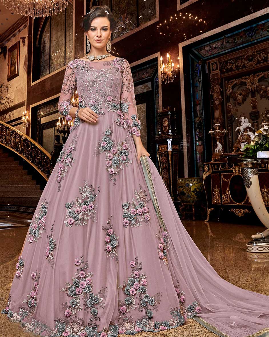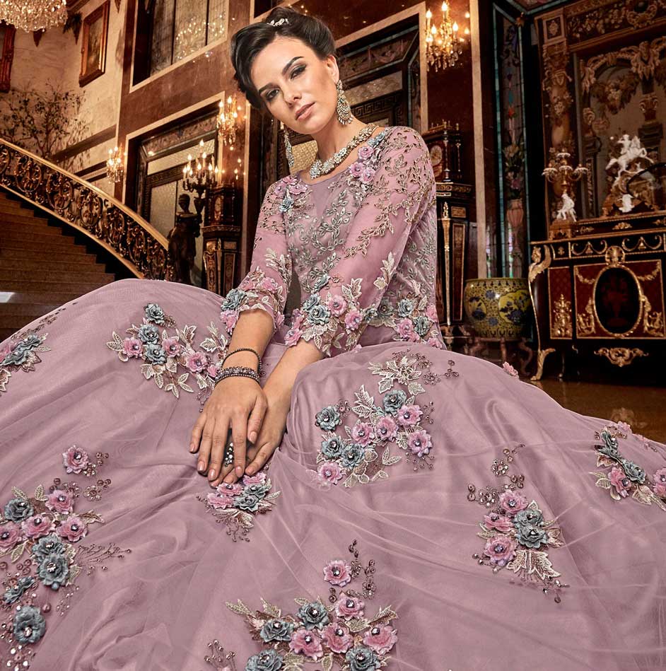Purple and Violet color Salwar Kameez in Net fabric with Embroidered, Stone, Thread, Zari work