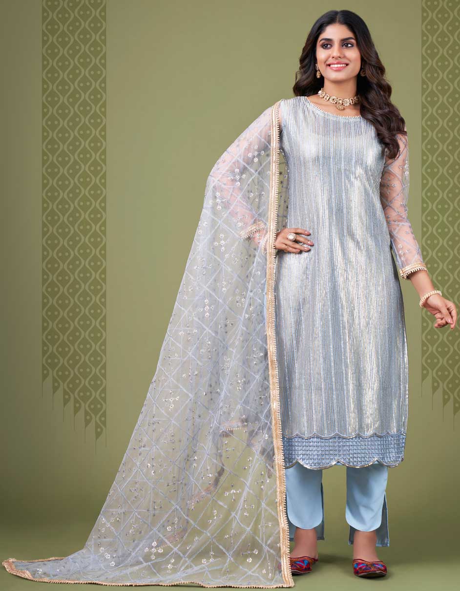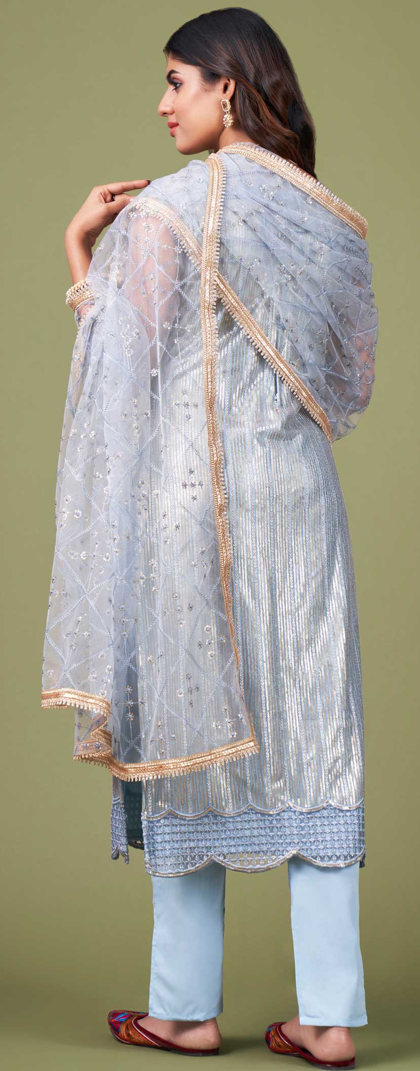 Blue color Salwar Kameez in Net fabric with Embroidered, Sequence, Thread work