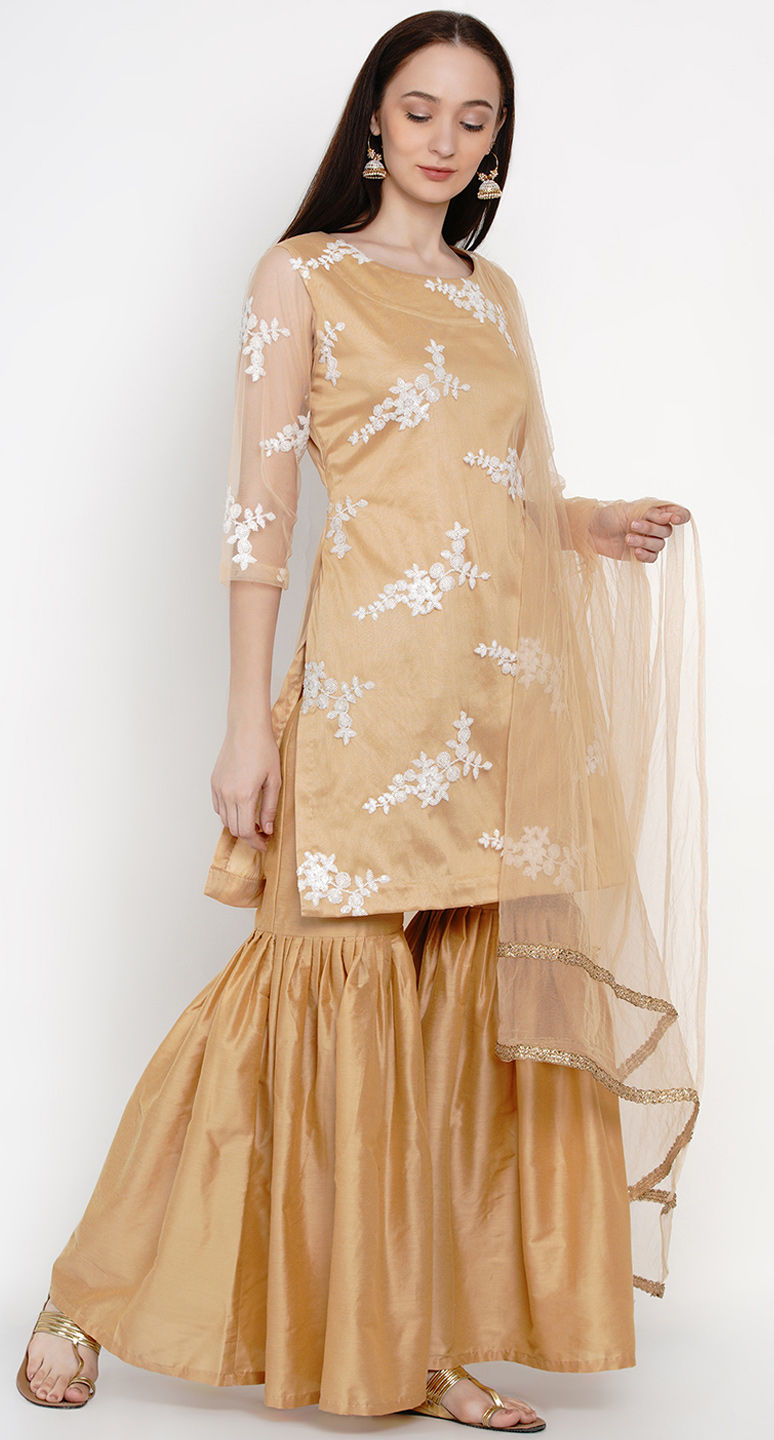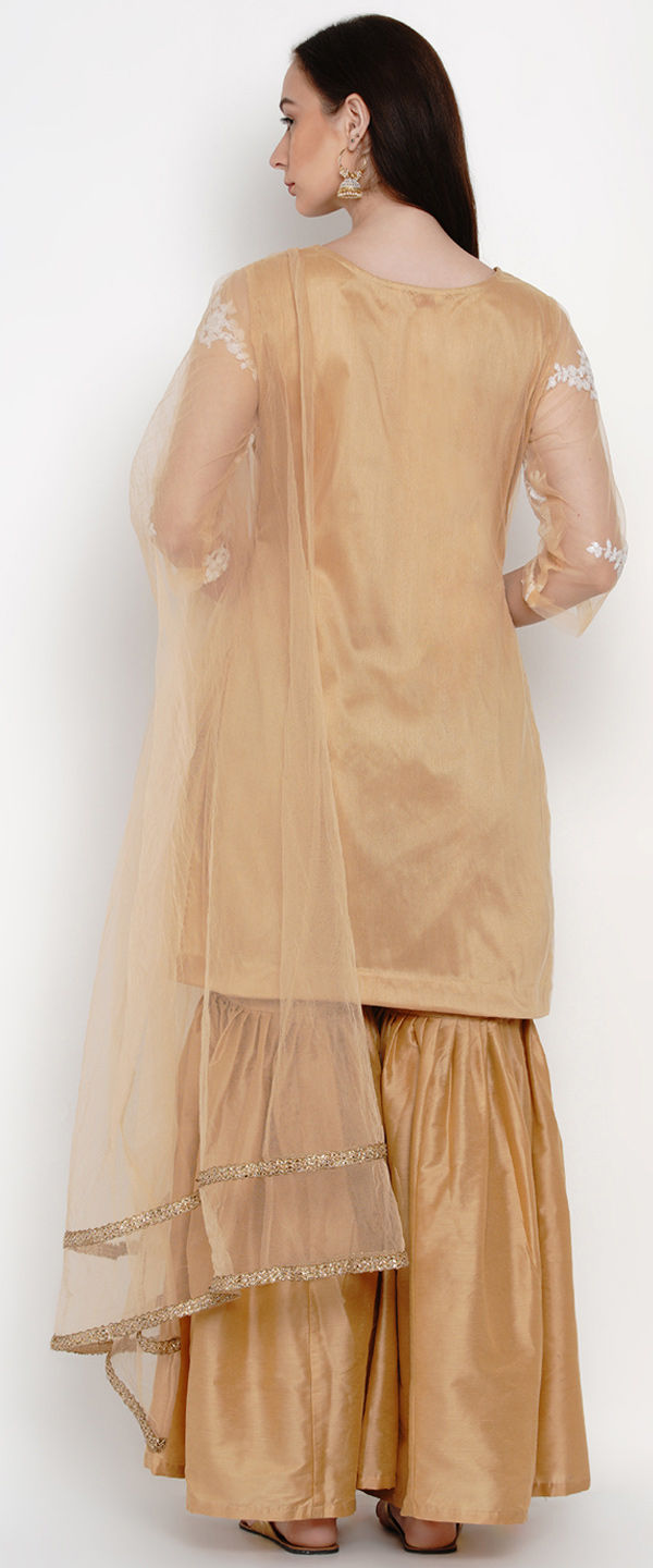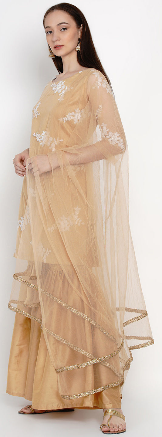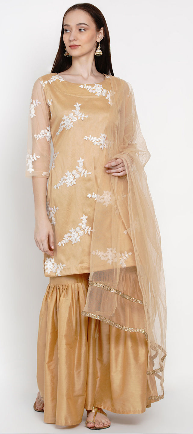 Gold color Salwar Kameez in Net fabric with Sequence work