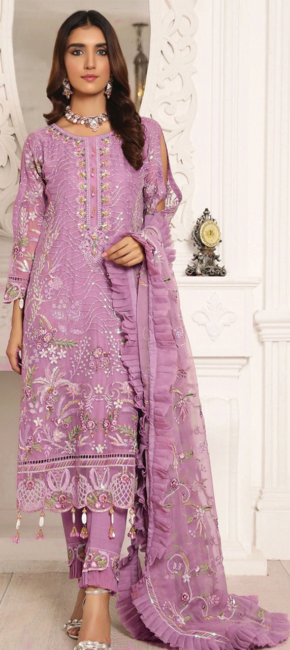 Pink and Majenta color Salwar Kameez in Net fabric with Embroidered, Resham, Thread work