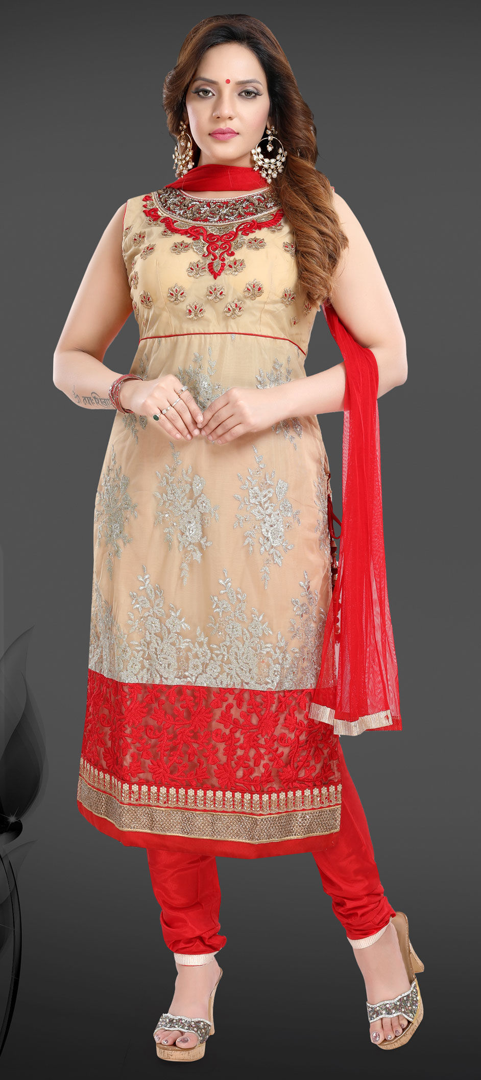 Red and Maroon color Salwar Kameez in Net fabric with Embroidered, Resham, Thread work