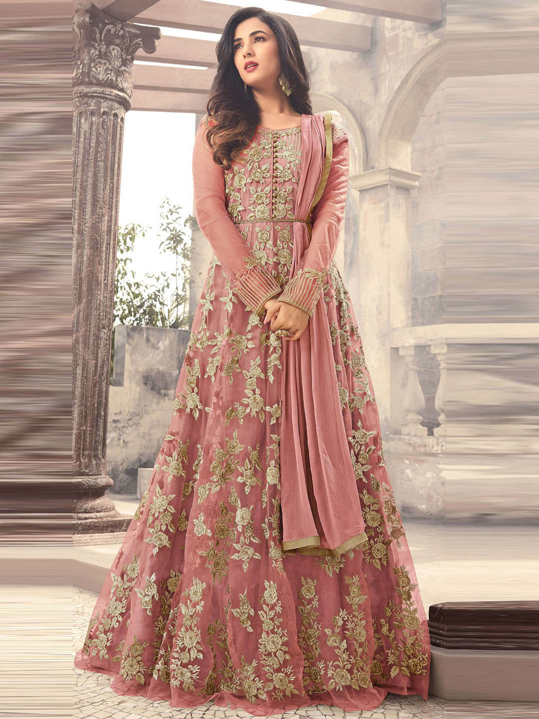 Pink and Majenta color Salwar Kameez in Net fabric with Embroidered, Sequence, Stone, Zari work
