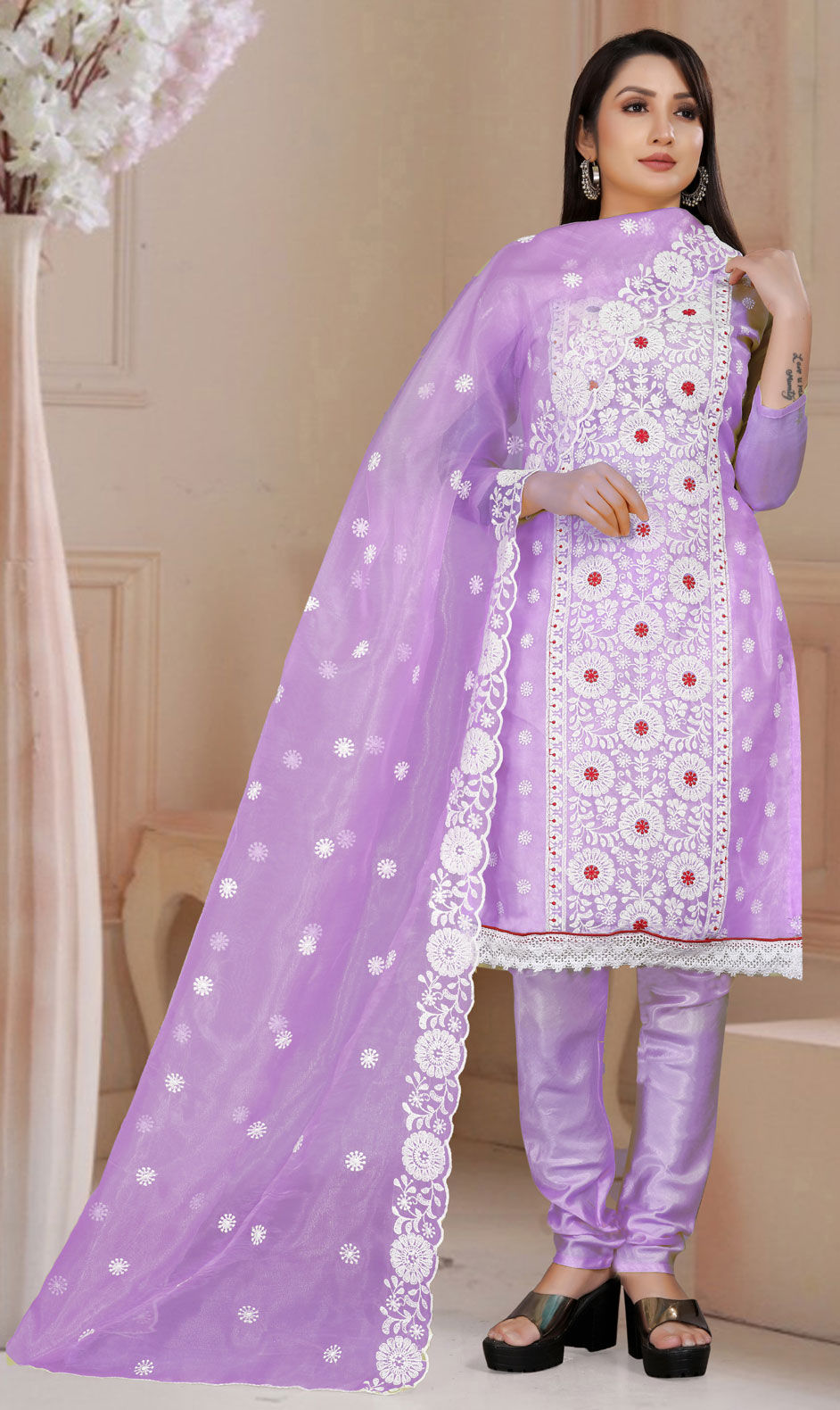 Purple and Violet color Salwar Kameez in Organza Silk fabric with Embroidered, Resham, Thread work