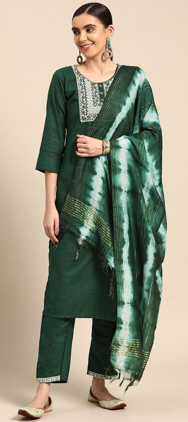 Green color Salwar Kameez in Poly cotton fabric with Embroidered work