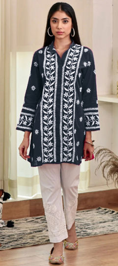 Blue color Salwar Kameez in Rayon fabric with Embroidered, Resham, Thread work