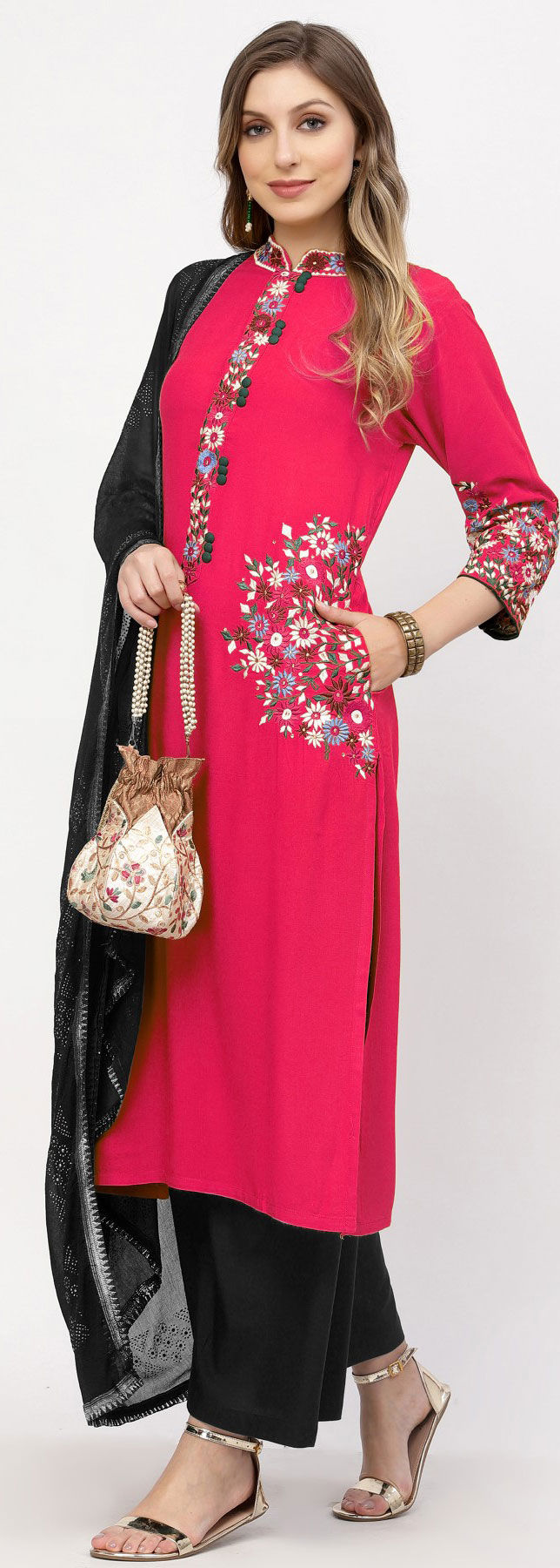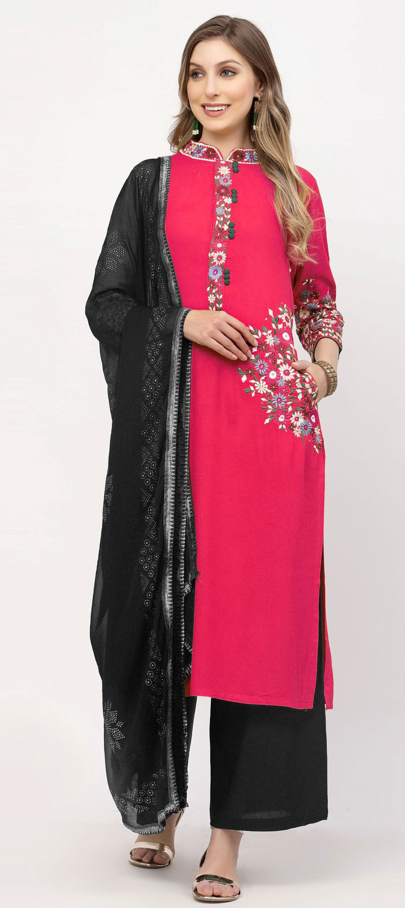 Pink and Majenta color Salwar Kameez in Rayon fabric with Embroidered work