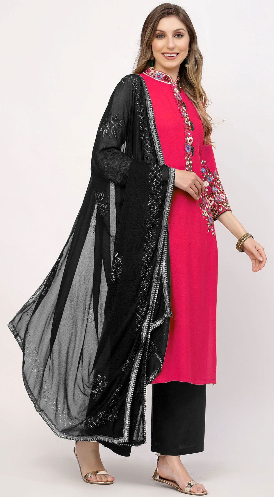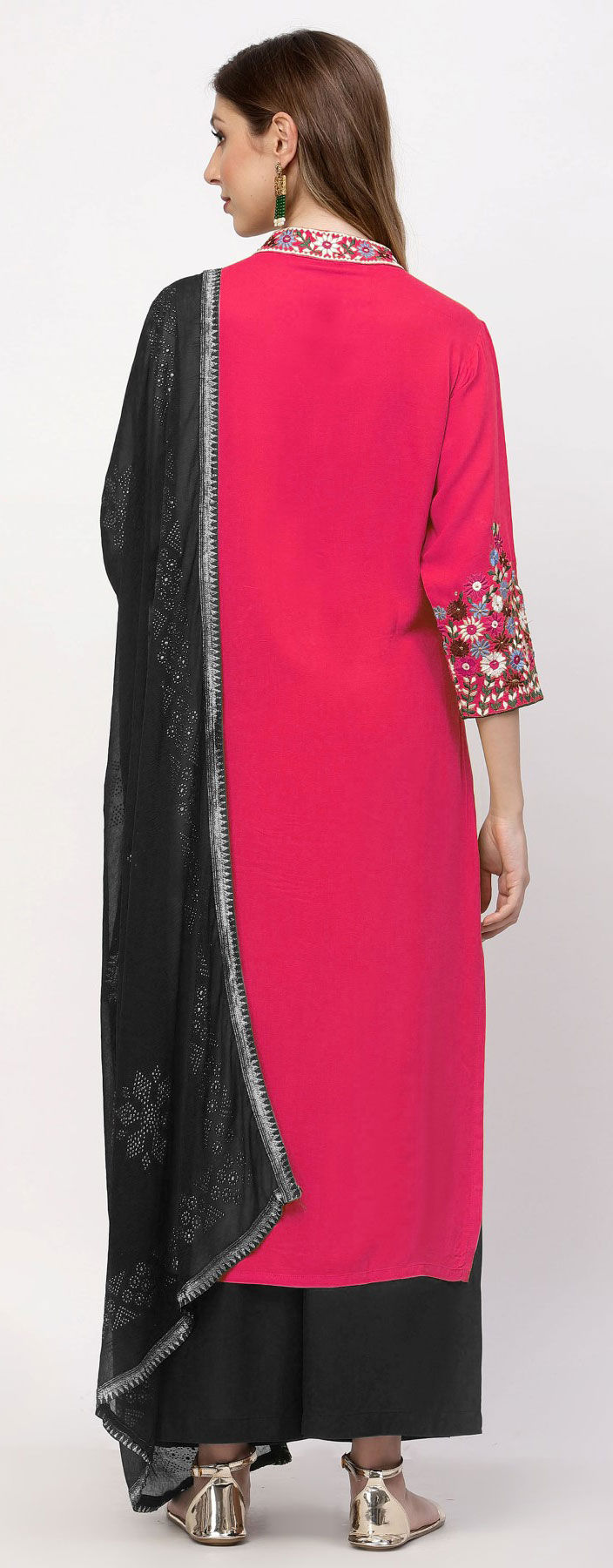 Rayon Party Wear Salwar Kameez in Pink and Majenta with Embroidered work