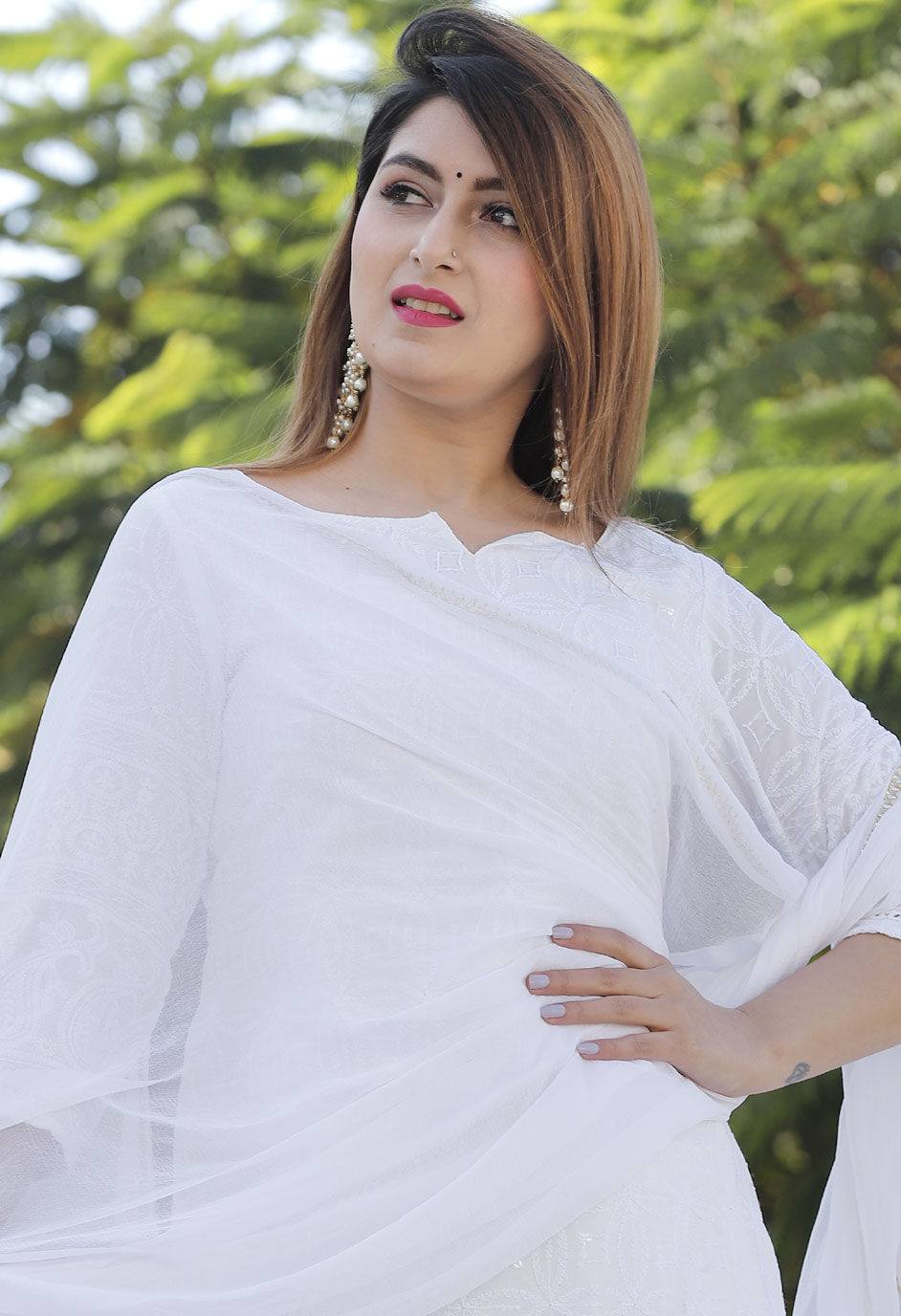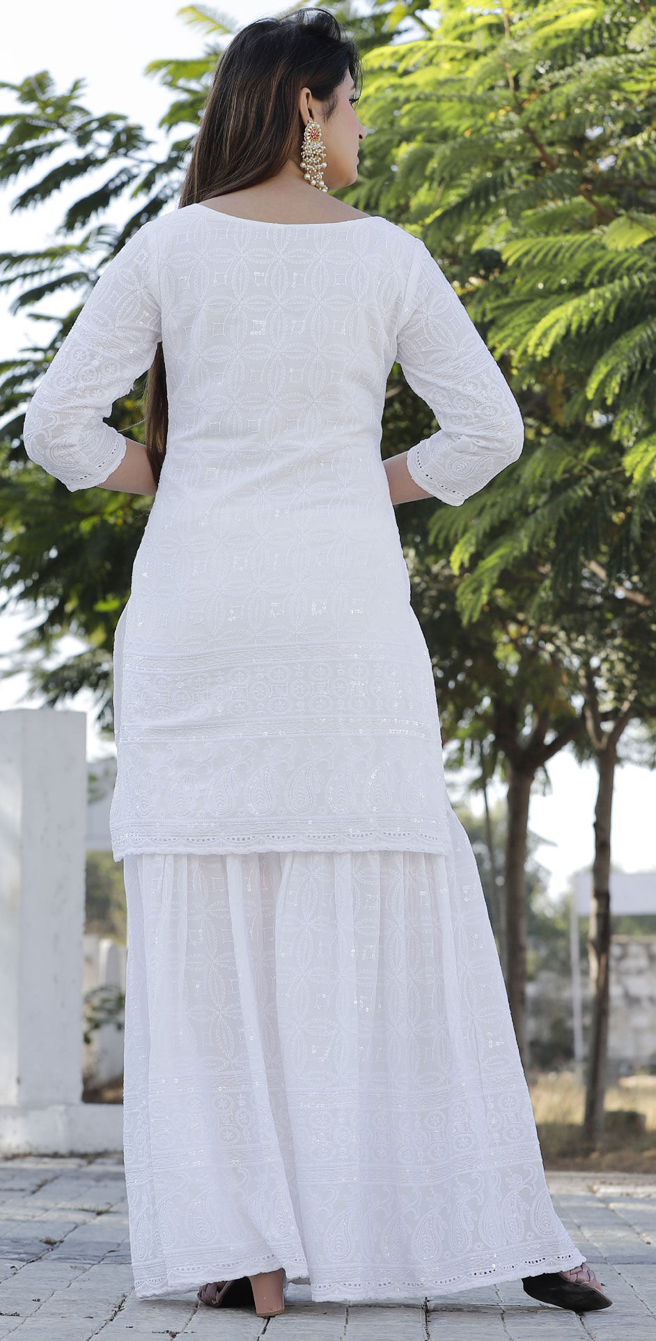in White and Off White with Embroidered work