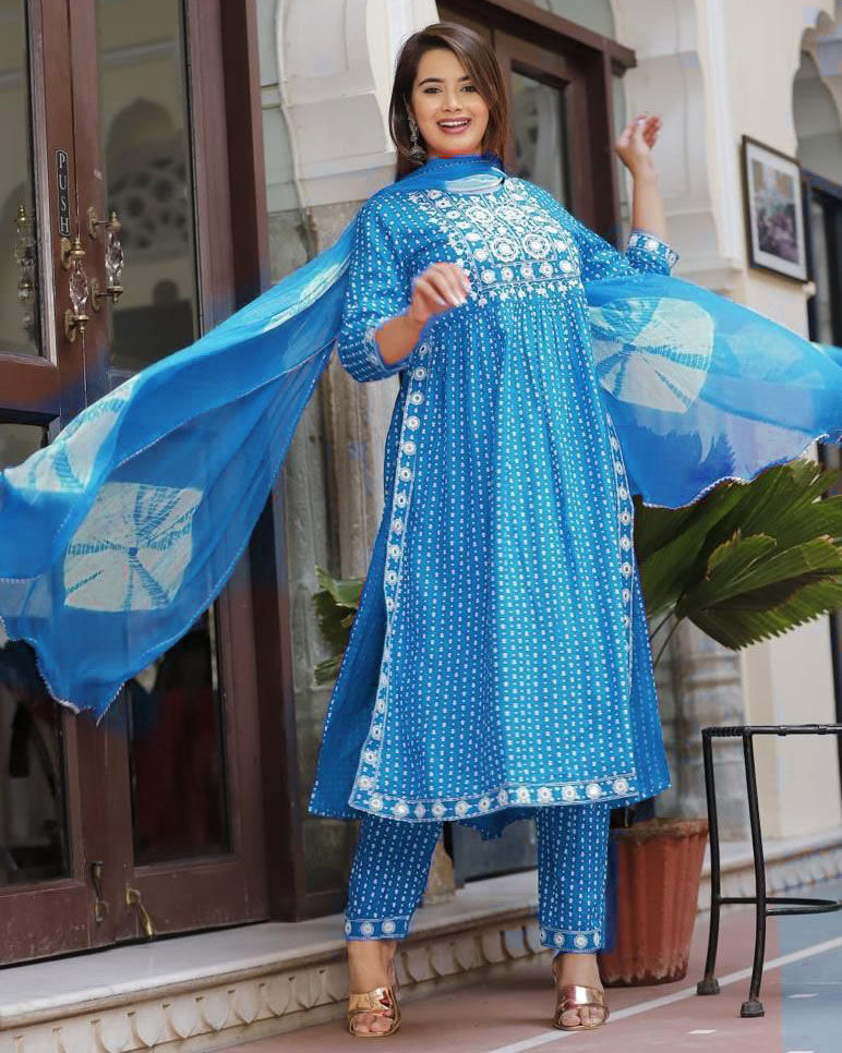 in Blue with Mirror work