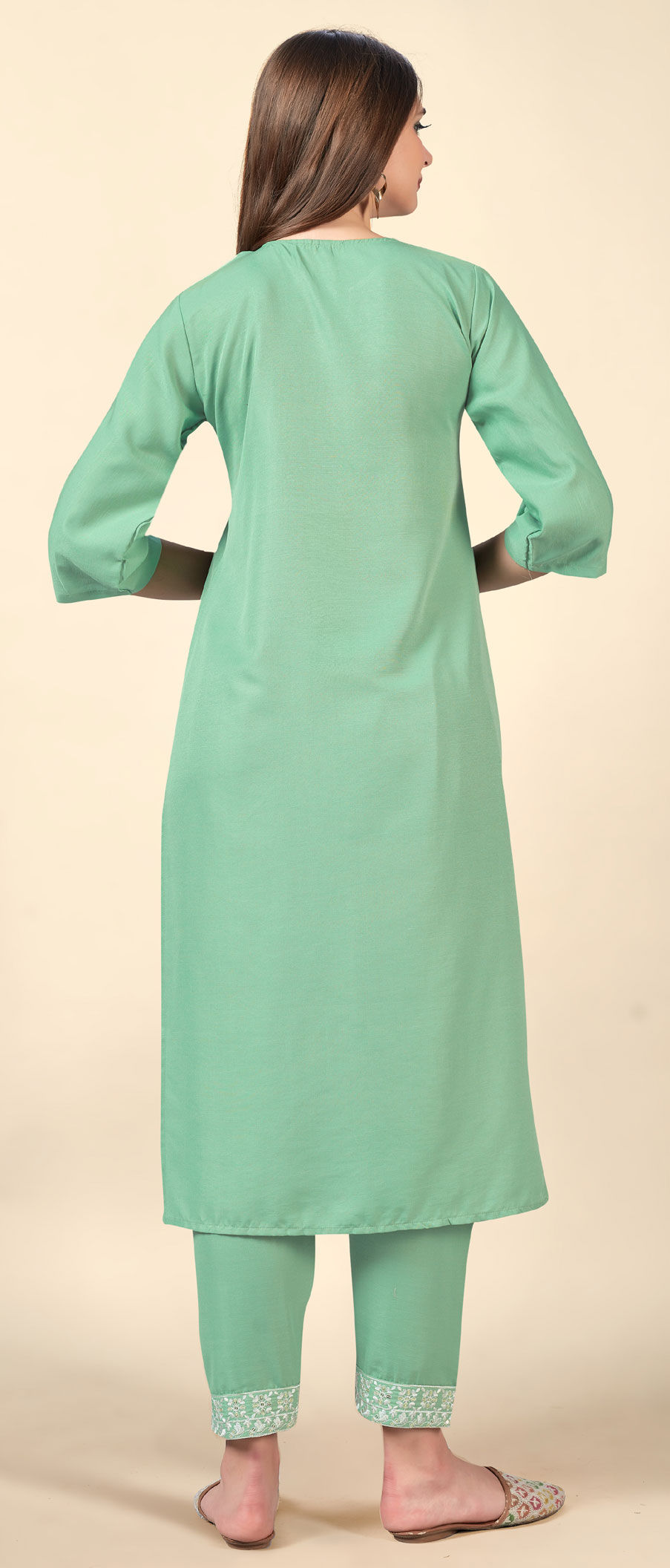 Green color Salwar Kameez in Rayon fabric with Embroidered, Resham, Thread work