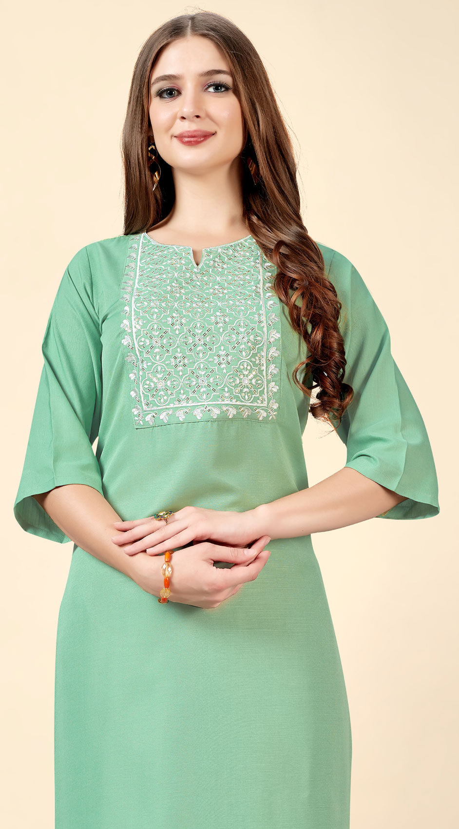 Rayon Party Wear Salwar Kameez in Green with Resham work