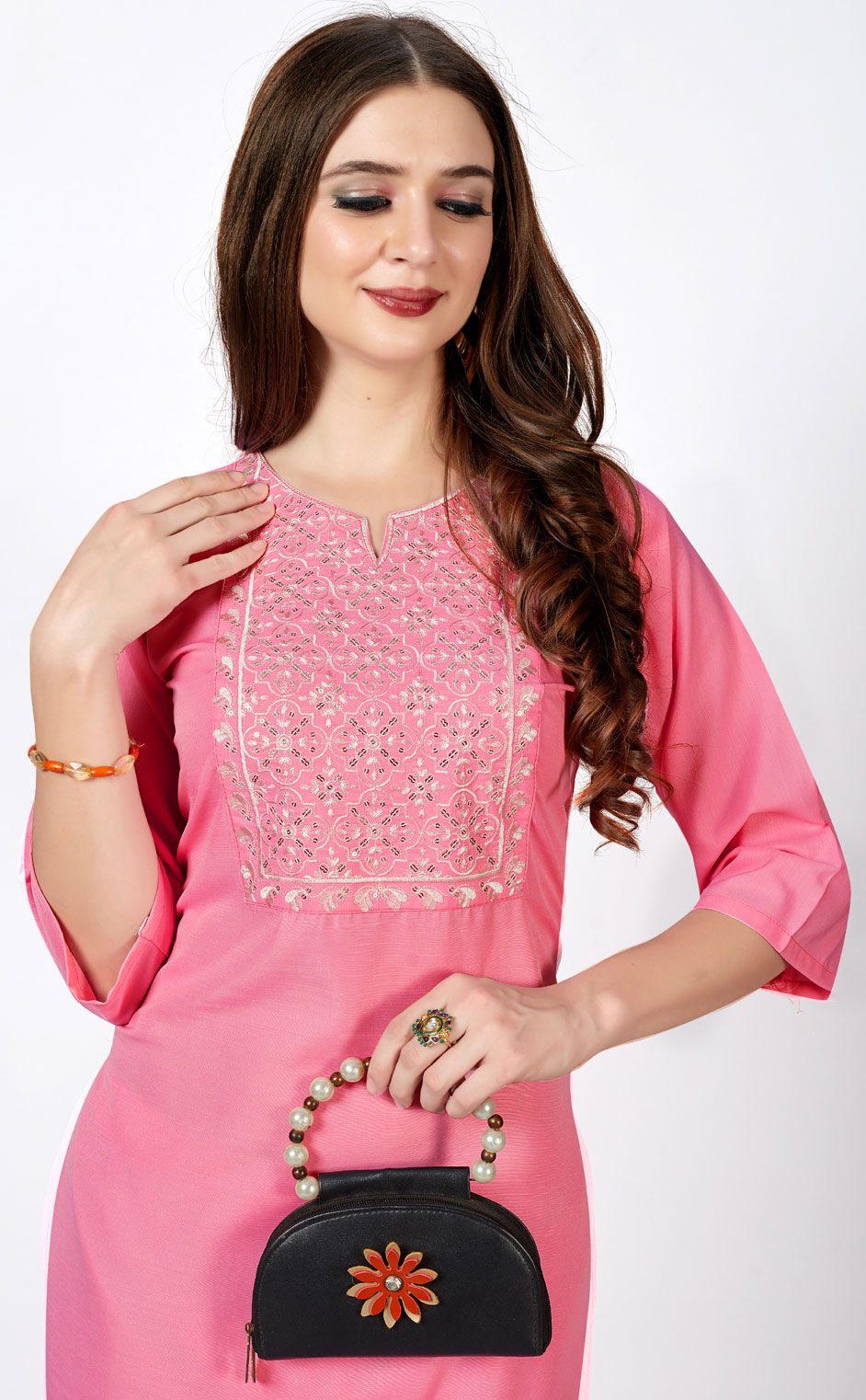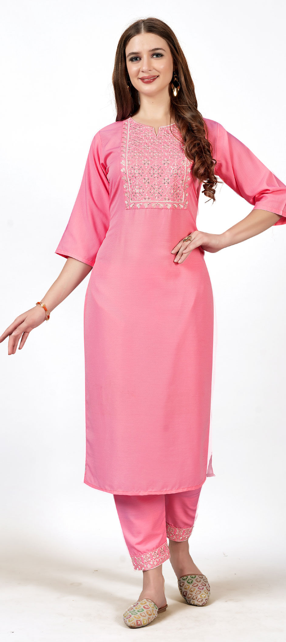 Pink and Majenta color Salwar Kameez in Rayon fabric with Embroidered, Resham, Thread work